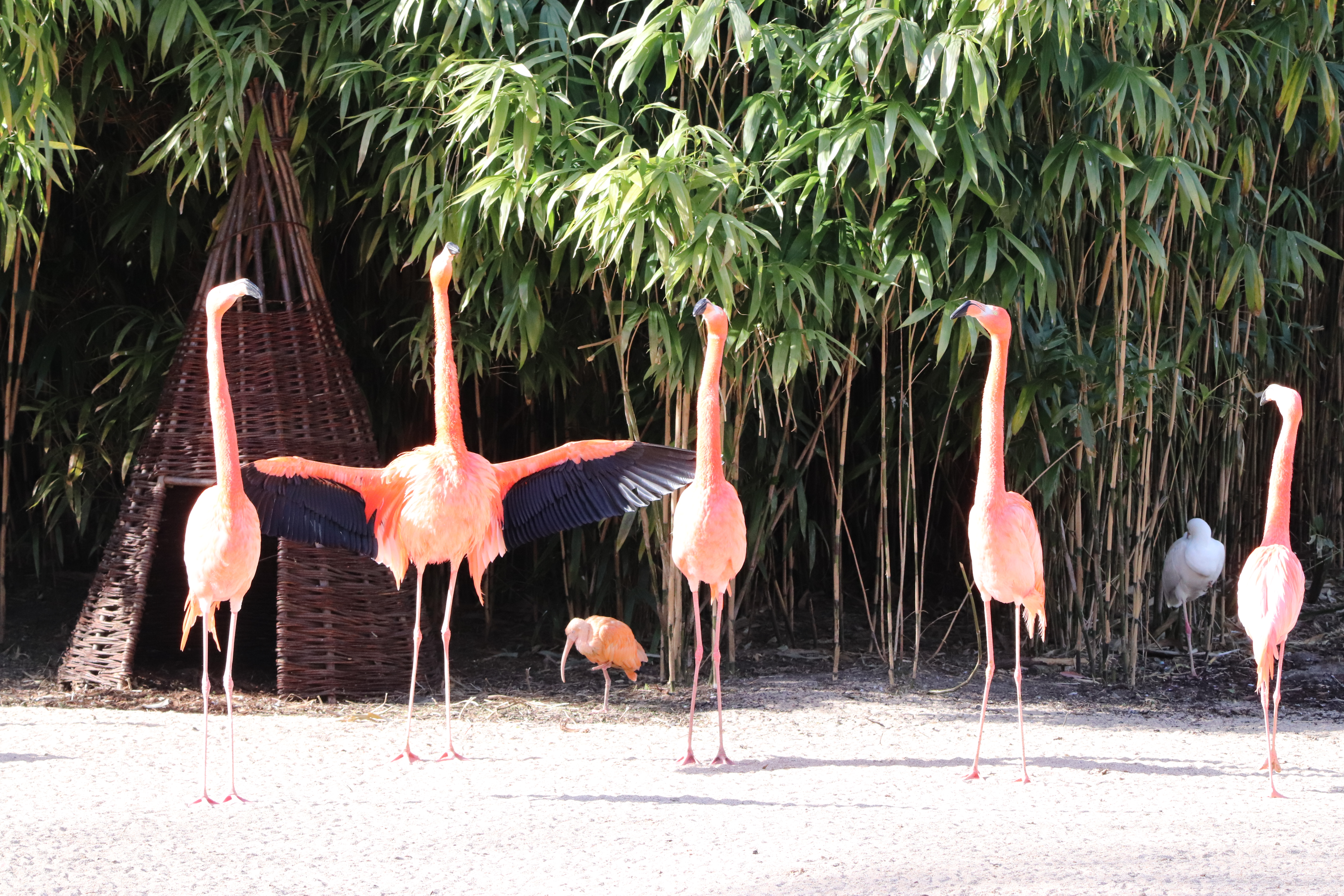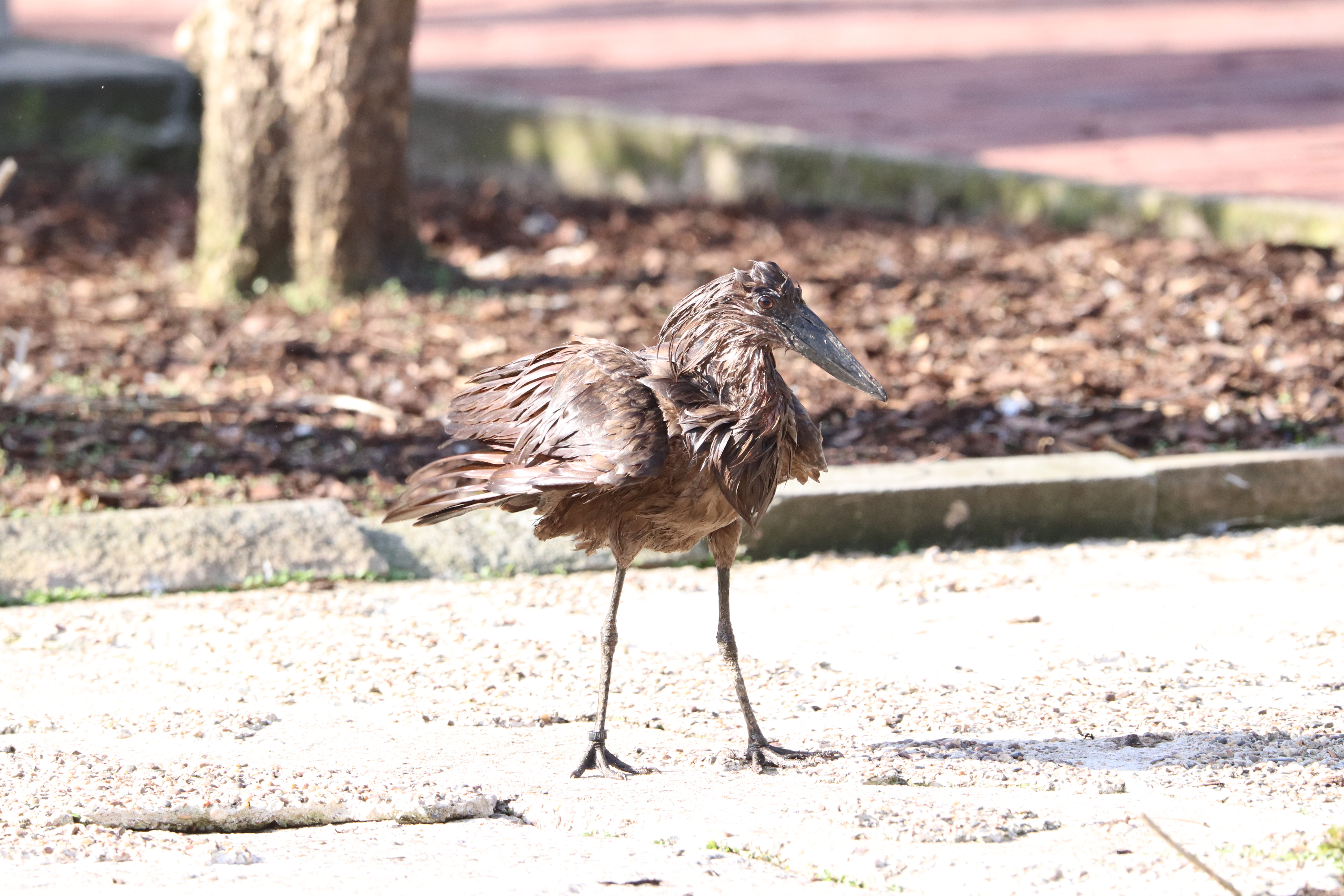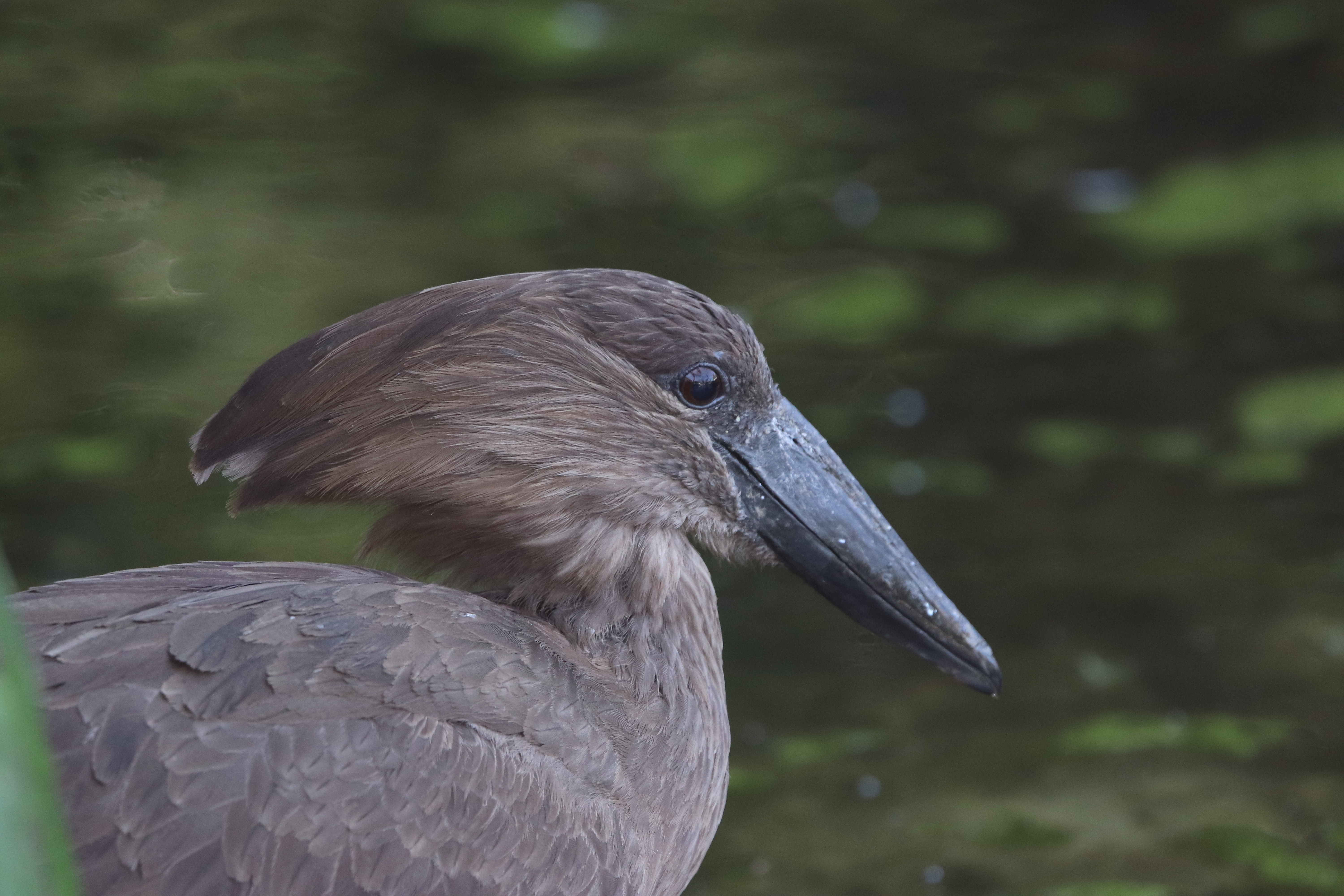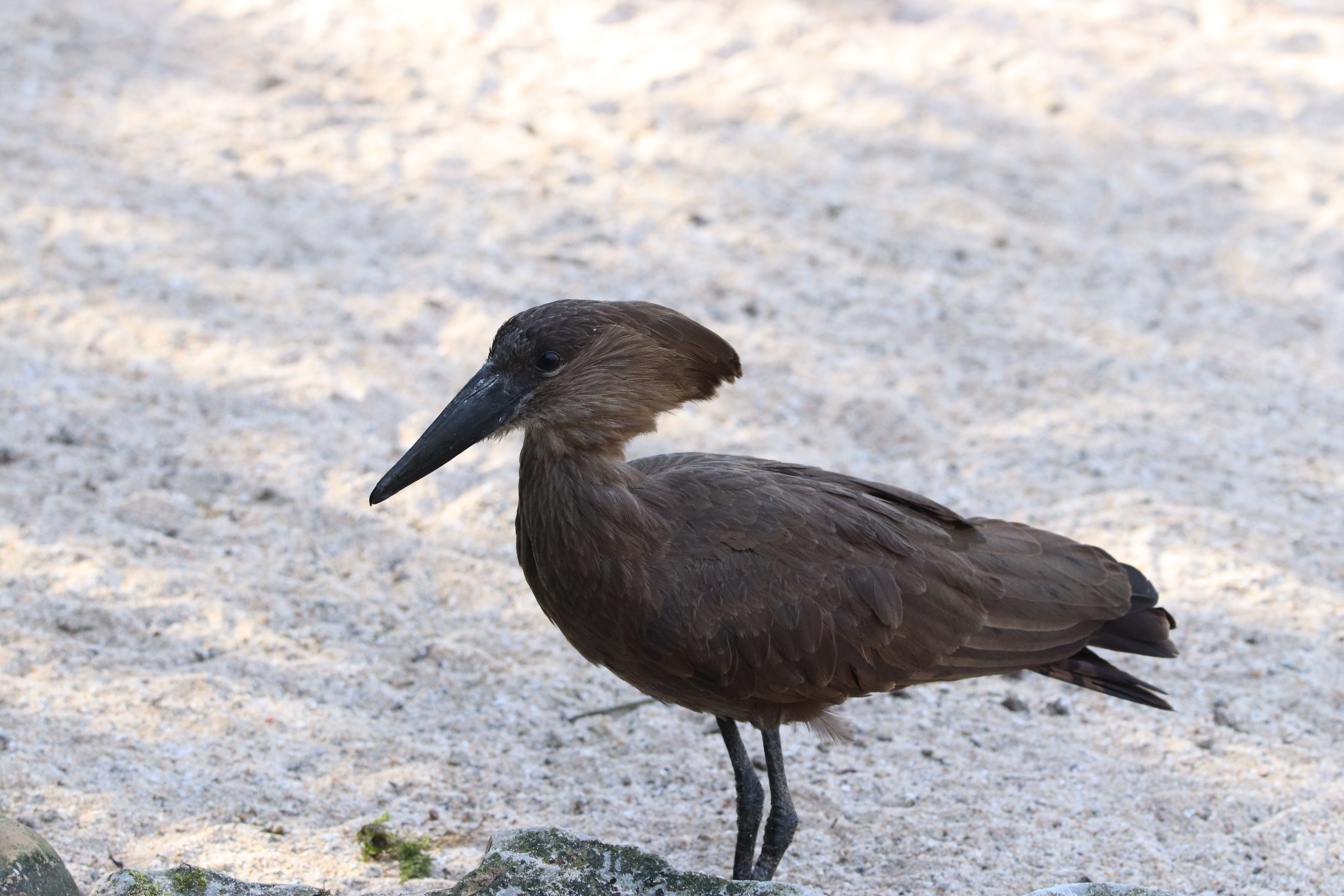 Für die Erwachsenen schön gestaltete Schaugärten, Blumenbeete und Teiche. Und auch Bereiche, wo sich die Interessen durchaus treffen. Zum Beispiel in der Freiflughalle der Vögel. Dort gibt es Flamingos, Nachtreiher, Seidenreiher, Sichler, Säbelschnäbler und einen Hammerkopf. Ein Vogel der mich besonders fasziniert. Von seinem Aussehen etwas ganz besonderes. Mal wieder ein Vogel bei dem man sofort versteht, woher der Name kommt!
