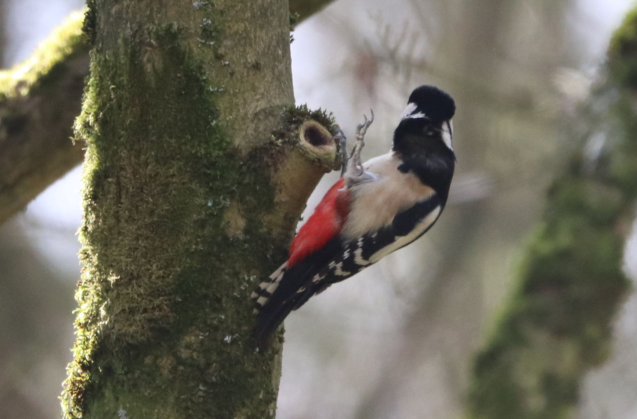 Am Dienstag konnte ich im Wald wieder einen weiblichen Buntspecht fotografieren. Die Buntspecht-Dame hat ein Astloch untersucht.