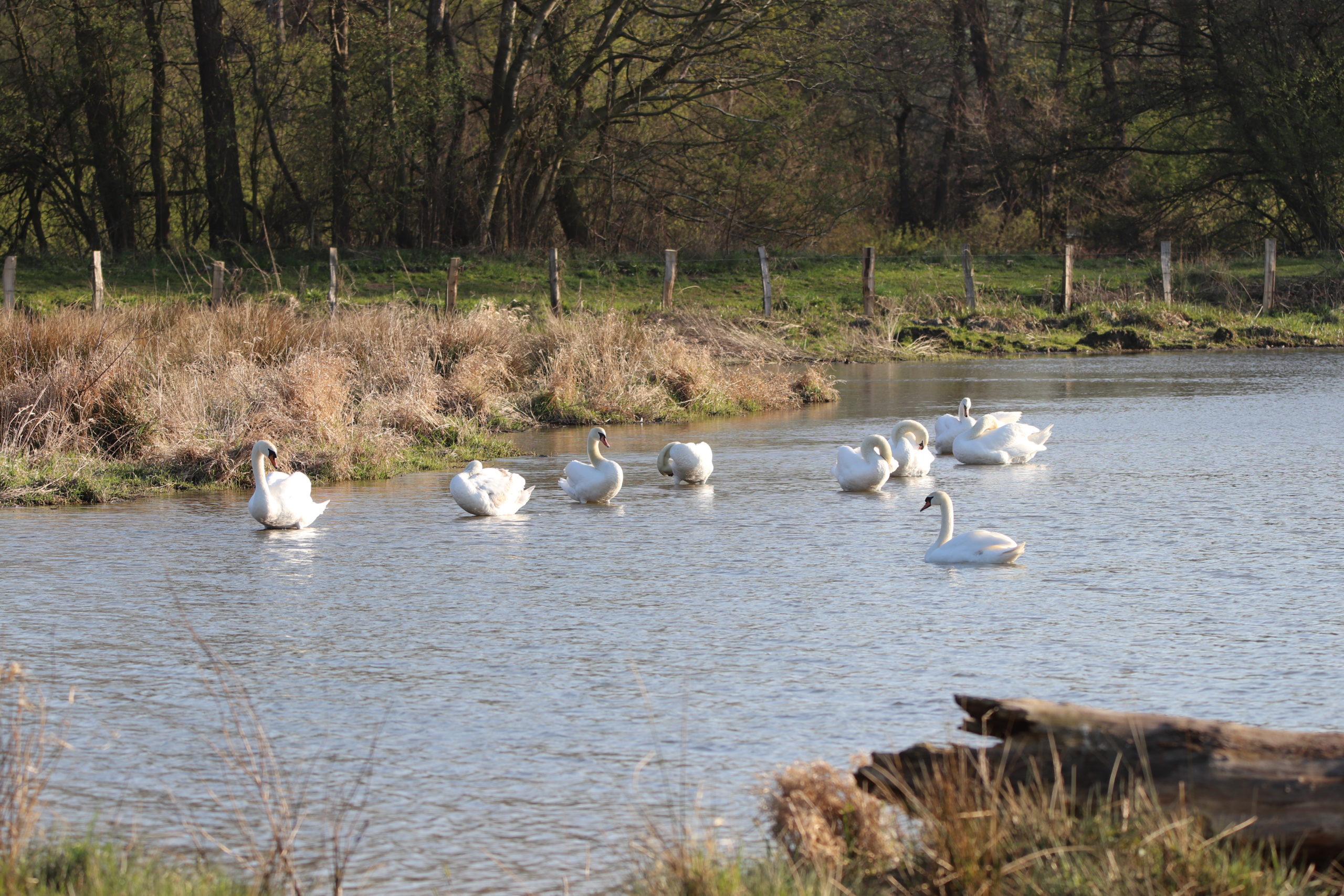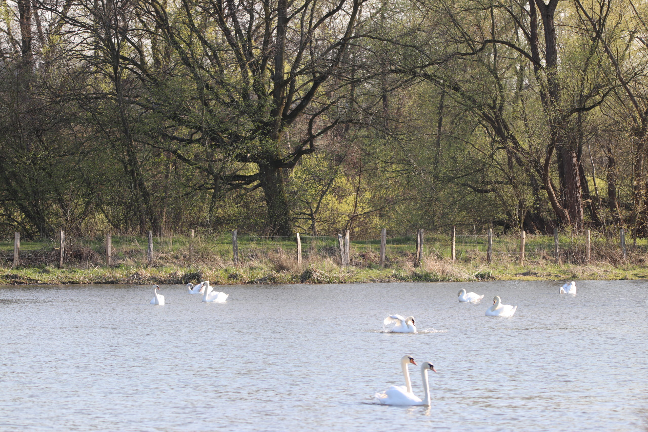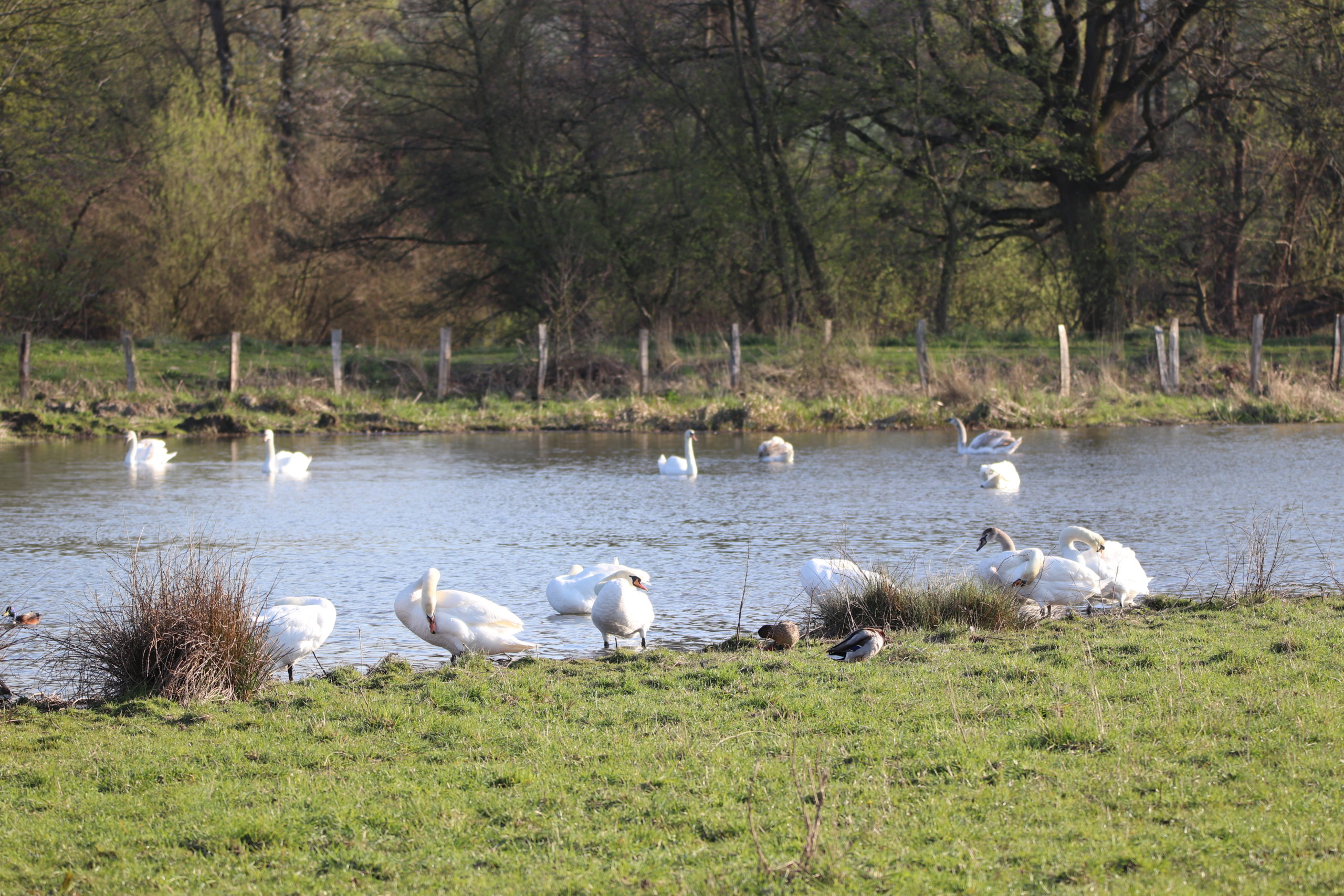 Auch größere Ansammlungen von Schwänen auf den Seen und Teichen kann man beobachten. Das bringt einen leicht in der Fantasie zu anmutigen Tänzerinnen in weißen Kostümen.