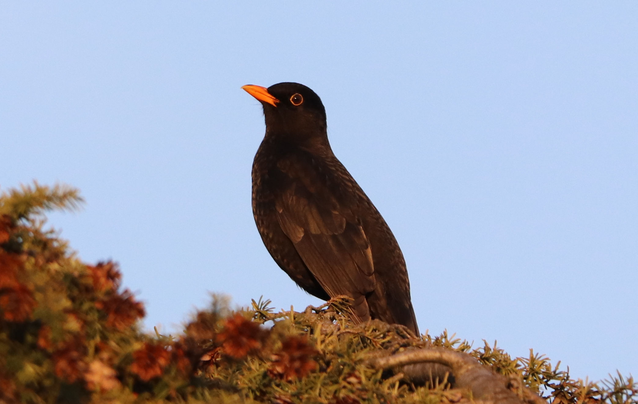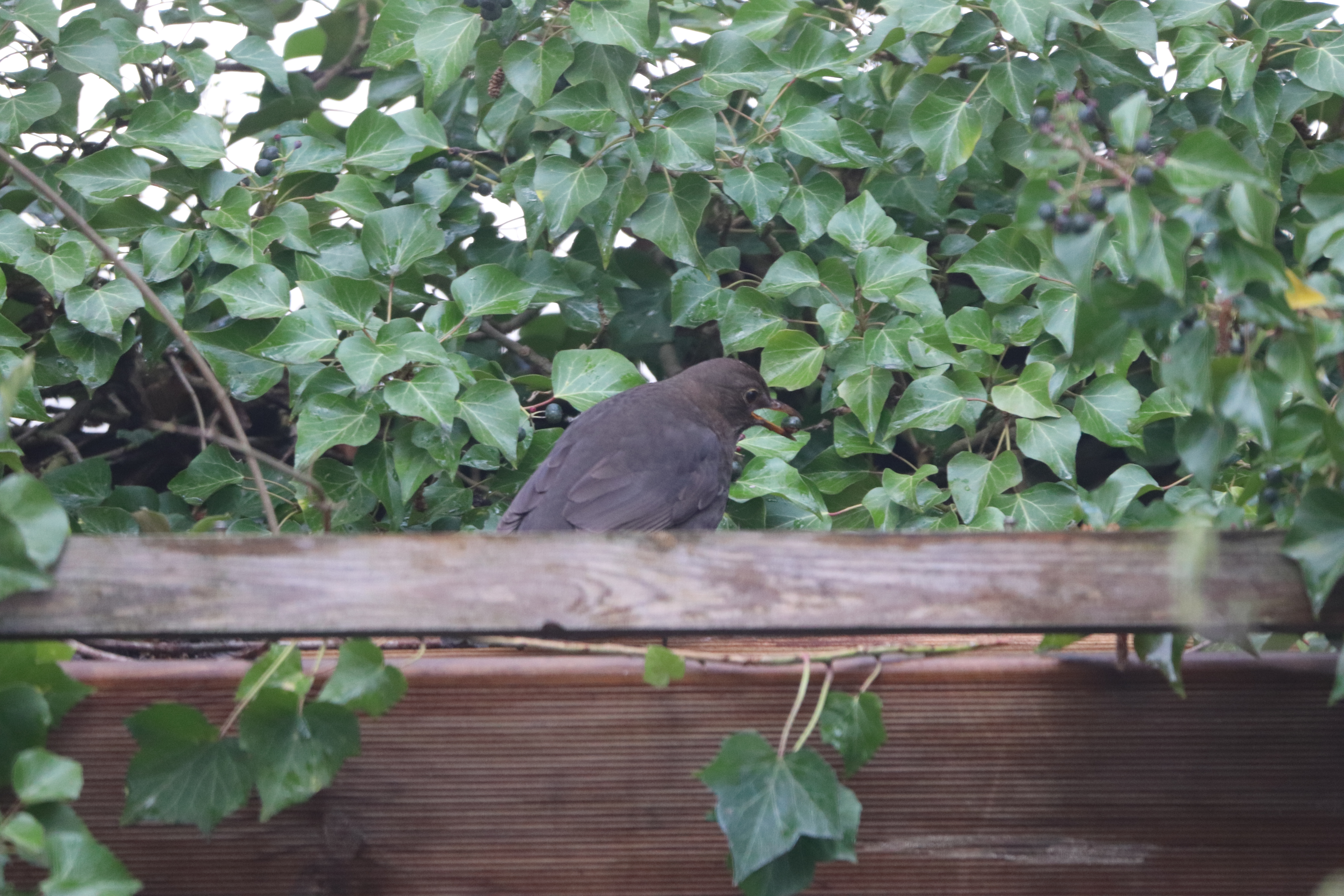 - Da hat das Amsel-Weibchen eine Beere erwischt