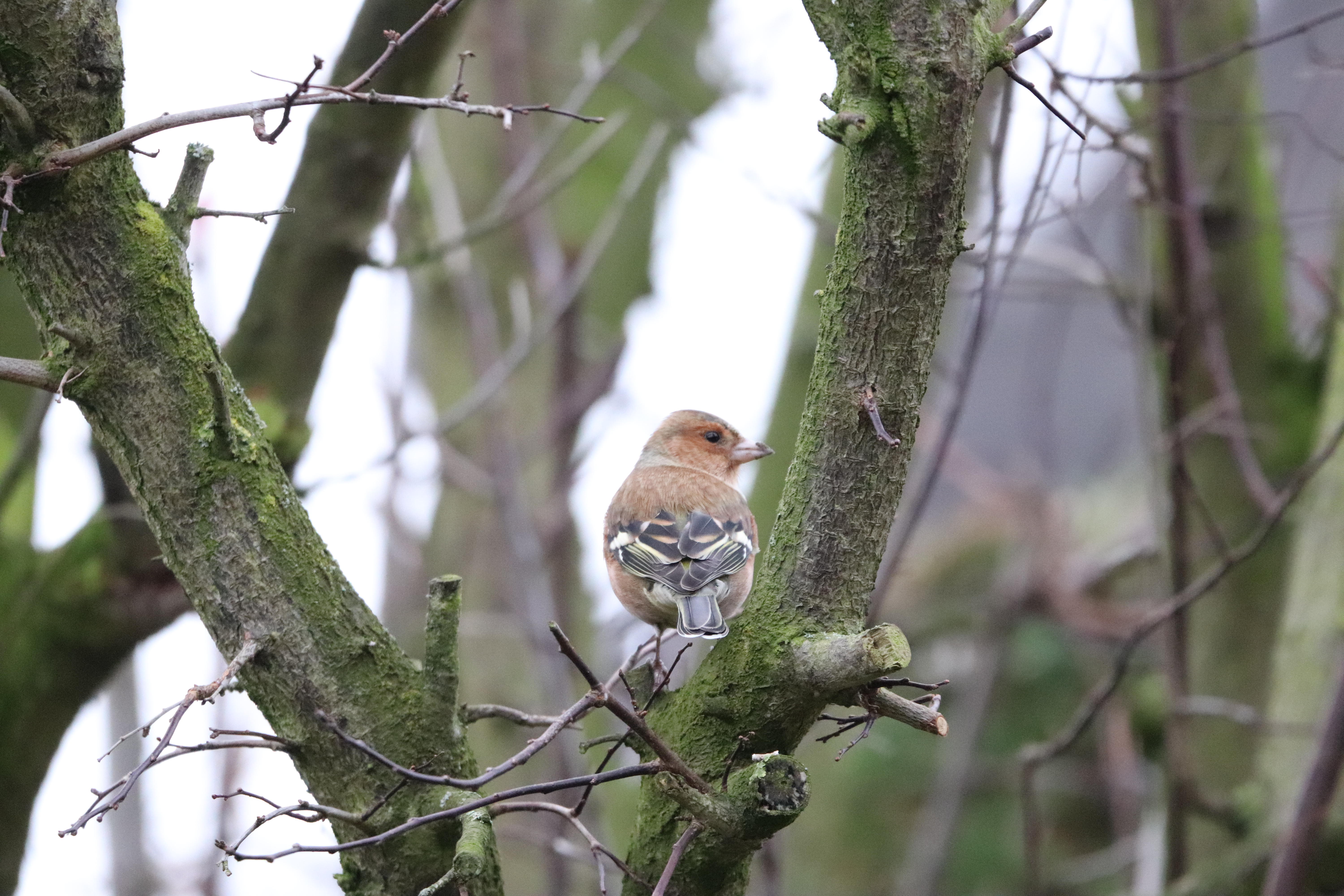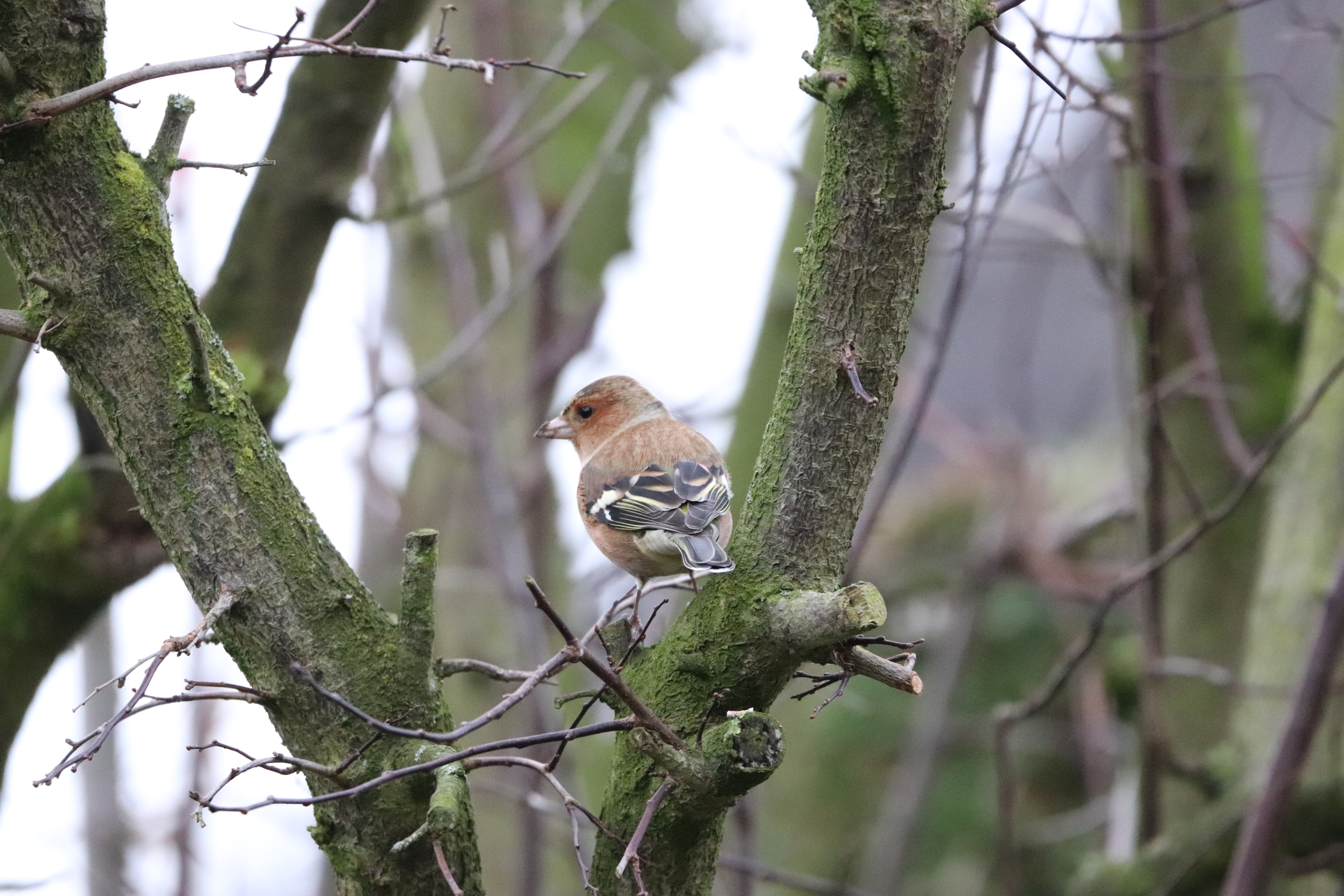 - Ein hübsches Buchfink-Männchen sass weiter oben im Baum