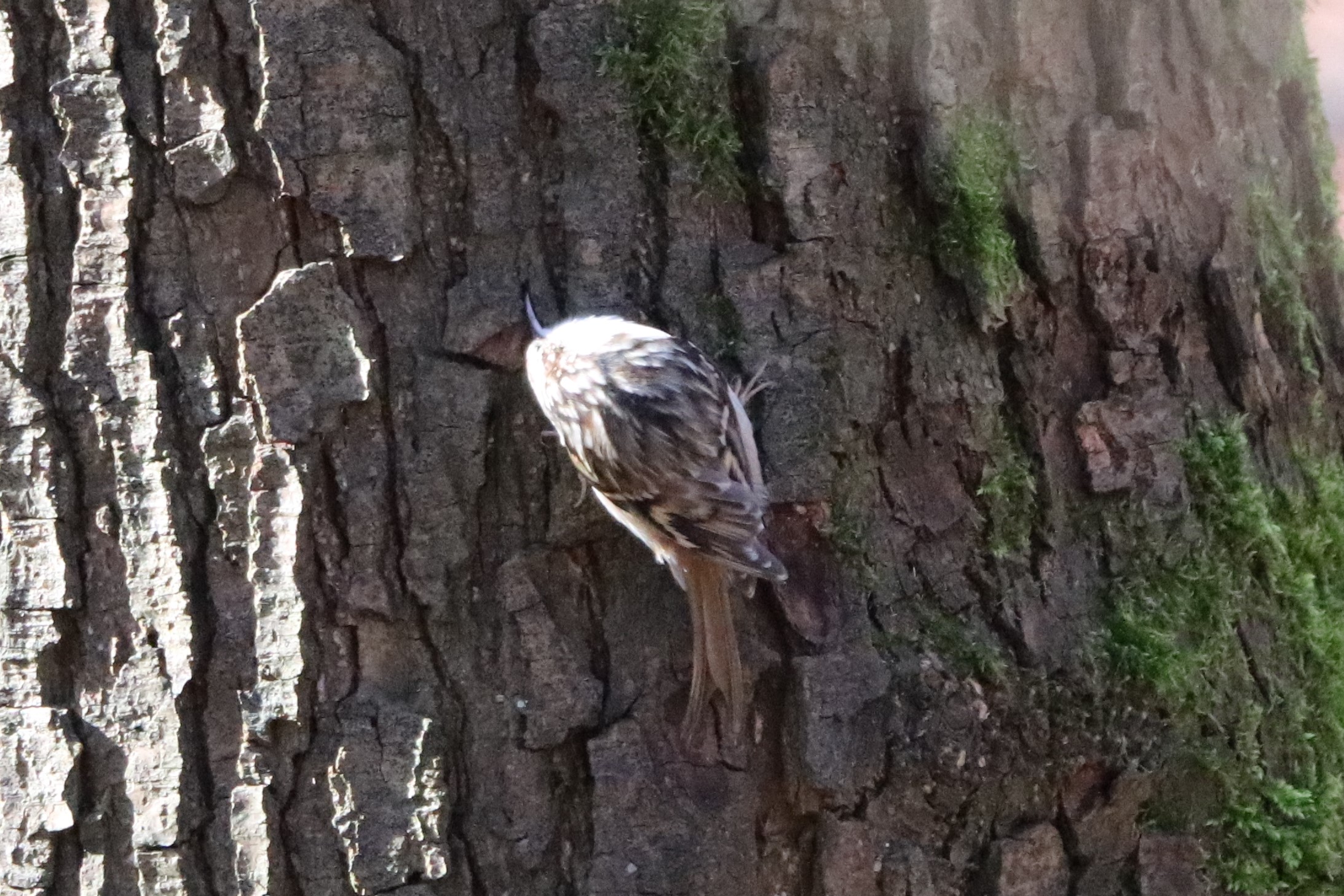 - Der Waldbaumläufer sucht mit dem Schnabel Insekten in der Rinde