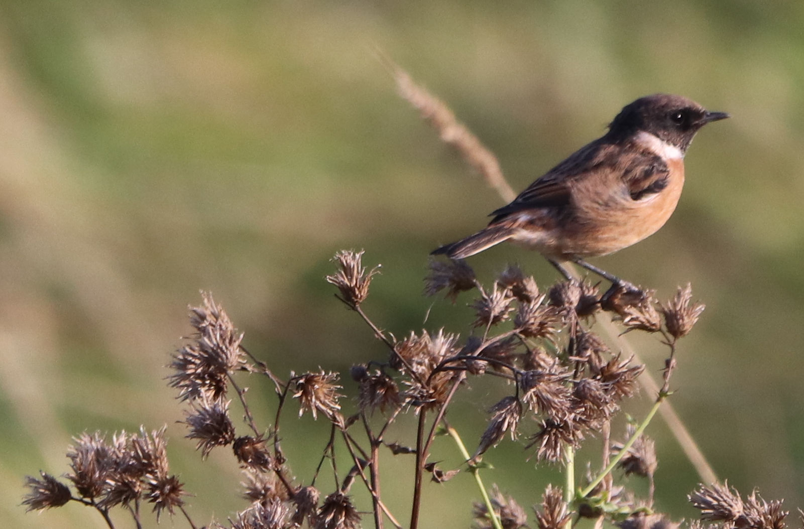 Auch die Braun- und Schwarzkehlchen rasten zur Zeit noch bei uns. Während die Braunkehlchen auch echte Langstreckenzieher sind und südlich der Sahara überwintern, bleibt das Schwarzkehlchen in Europa. Es überwintert in West- und Südeuropa. Zur Zeit hält sich noch ein Schwarzkehlchen-Paar an der Kiebitzwiese auf. Die meisten Braunkehlchen sind schon weggezogen.