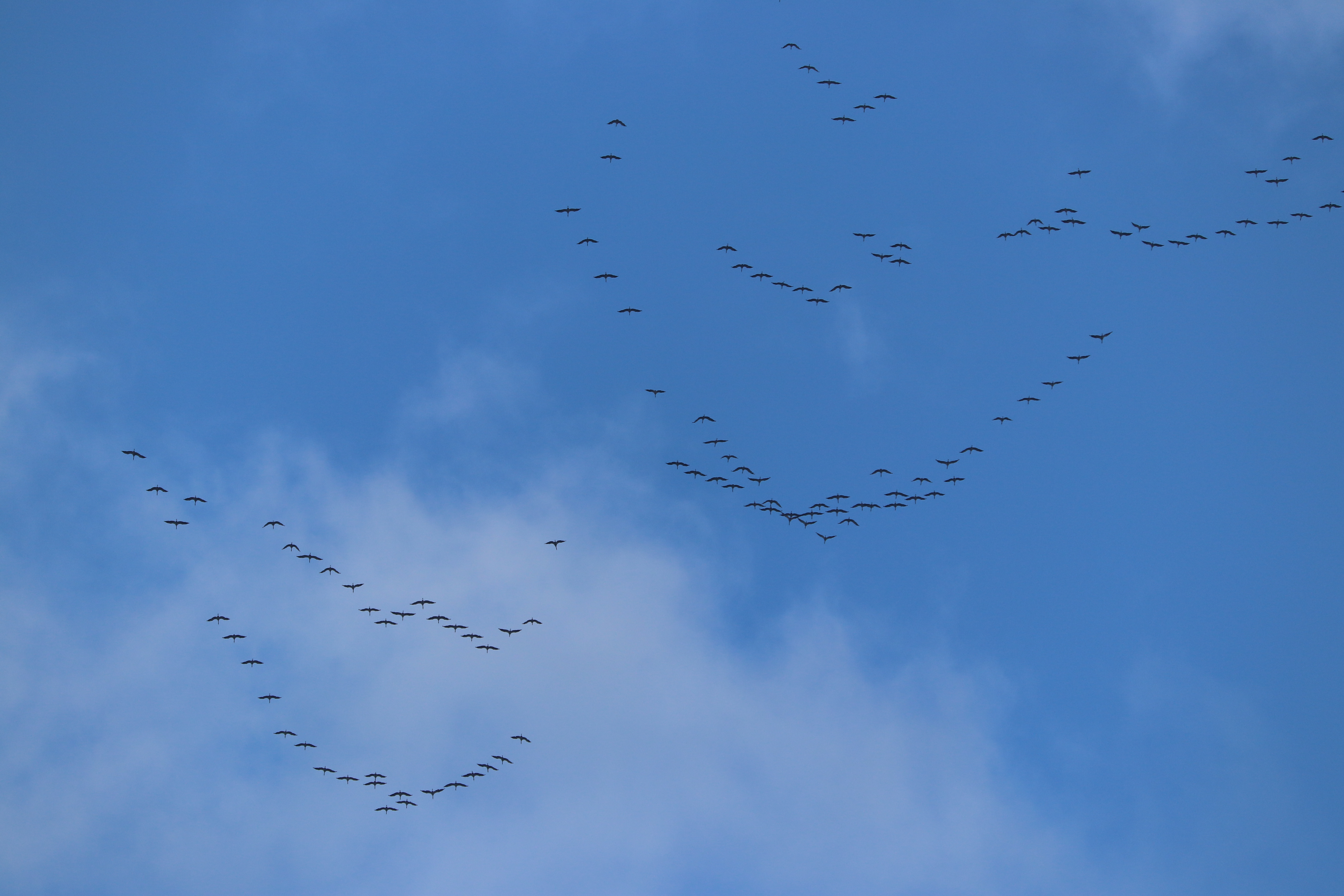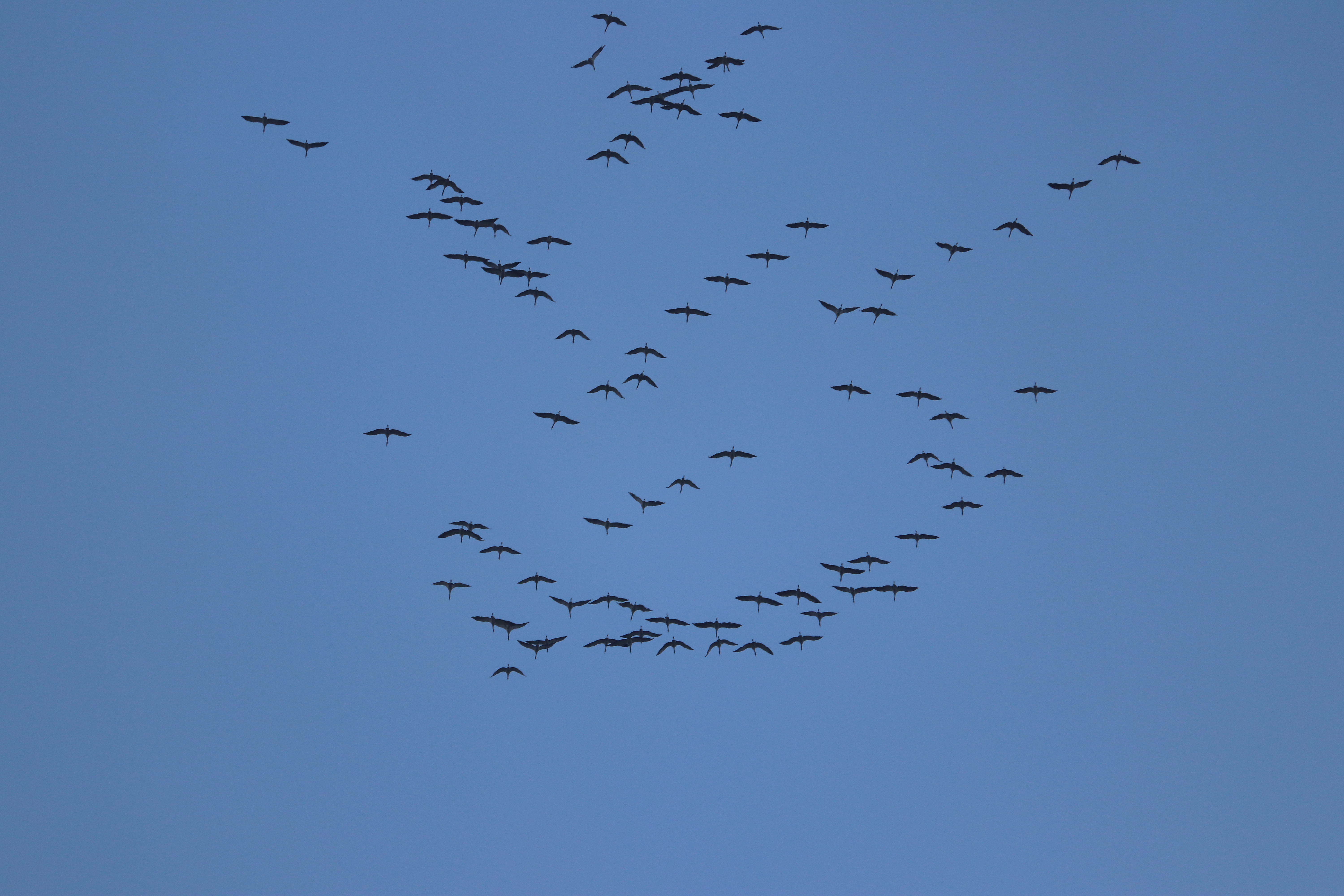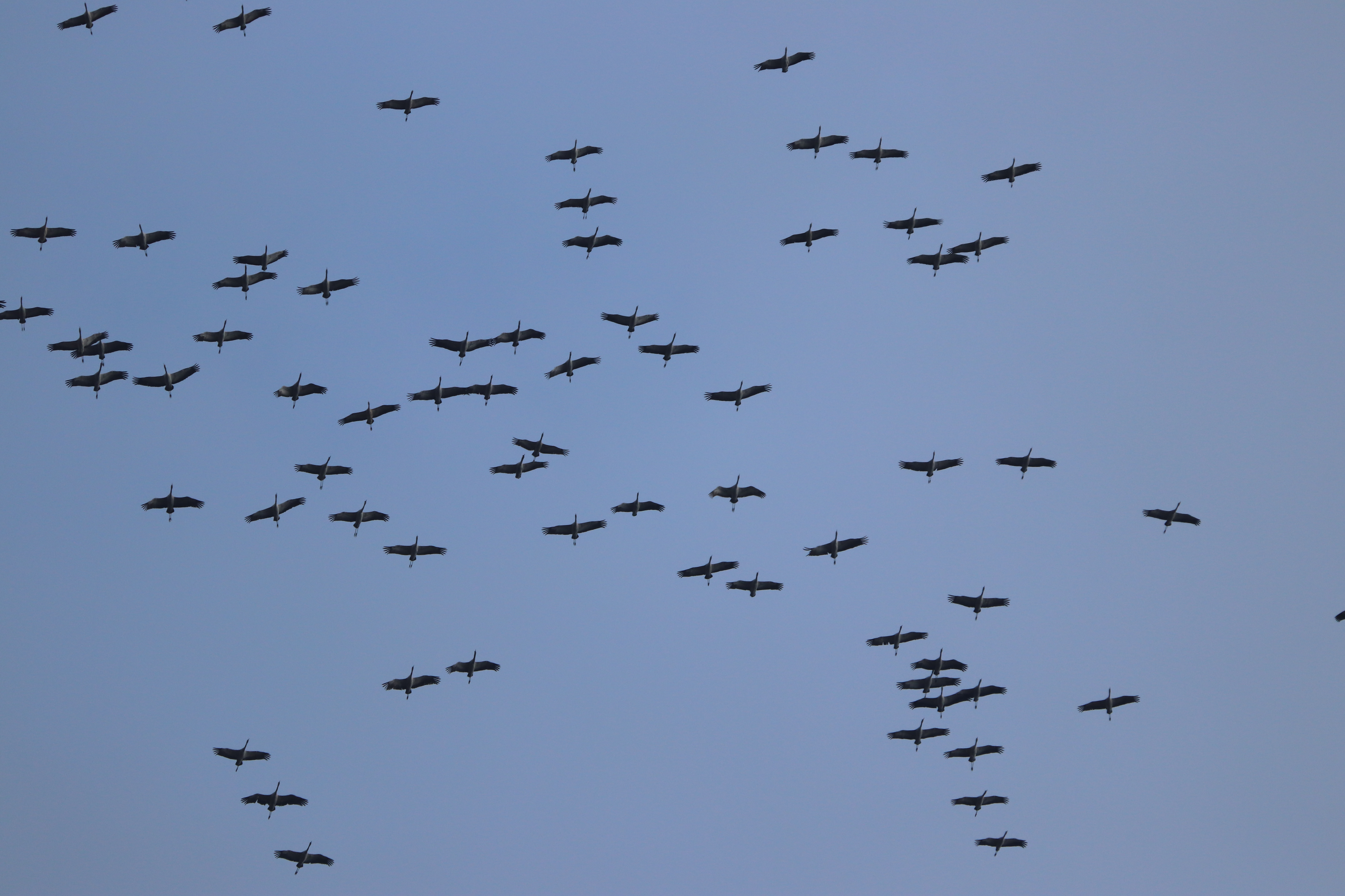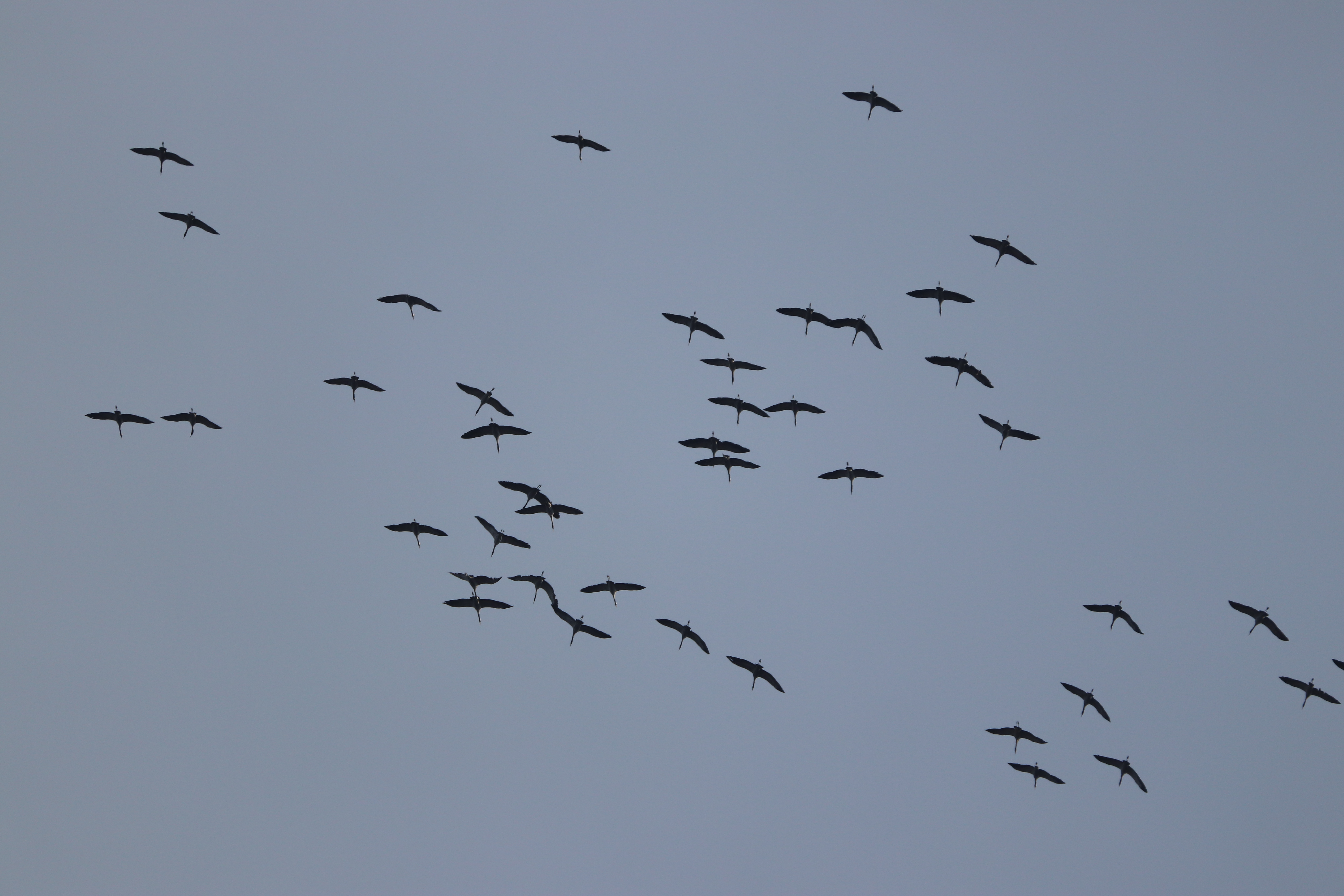 Über dem Sender haben die Kraniche dann ihre Flugformation verloren und sind dann wie in einem großen Schwarm im Kreis geflogen. Dieses Phänomen habe ich schon häufiger beobachtet. Es soll aber wohl nicht so sein, das die Vögel durch etwas gestört werden und ihre Formation verlieren. Also waren es wohl auch nicht die Wellen des Senders, die sie gestört haben. Sie haben ihre Formation nach ein paar Minuten wiedergefunden und sind weiter in Richtung Nordwesten geflogen. In die Richtung der Heimat- und Brutgebiete.