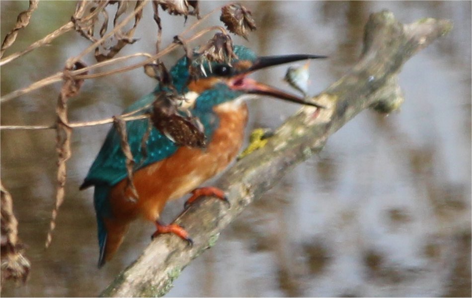 Auf den folgenden Fotos kann man das sehr gut sehen. Die Fotos sind im Naturschutzgebiet Kiebitzwiese in Fröndenberg an der Ruhr entstanden. Dort kann man den Eisvogel mit etwas Glück sehr lange und bei der Jagd beobachten.
