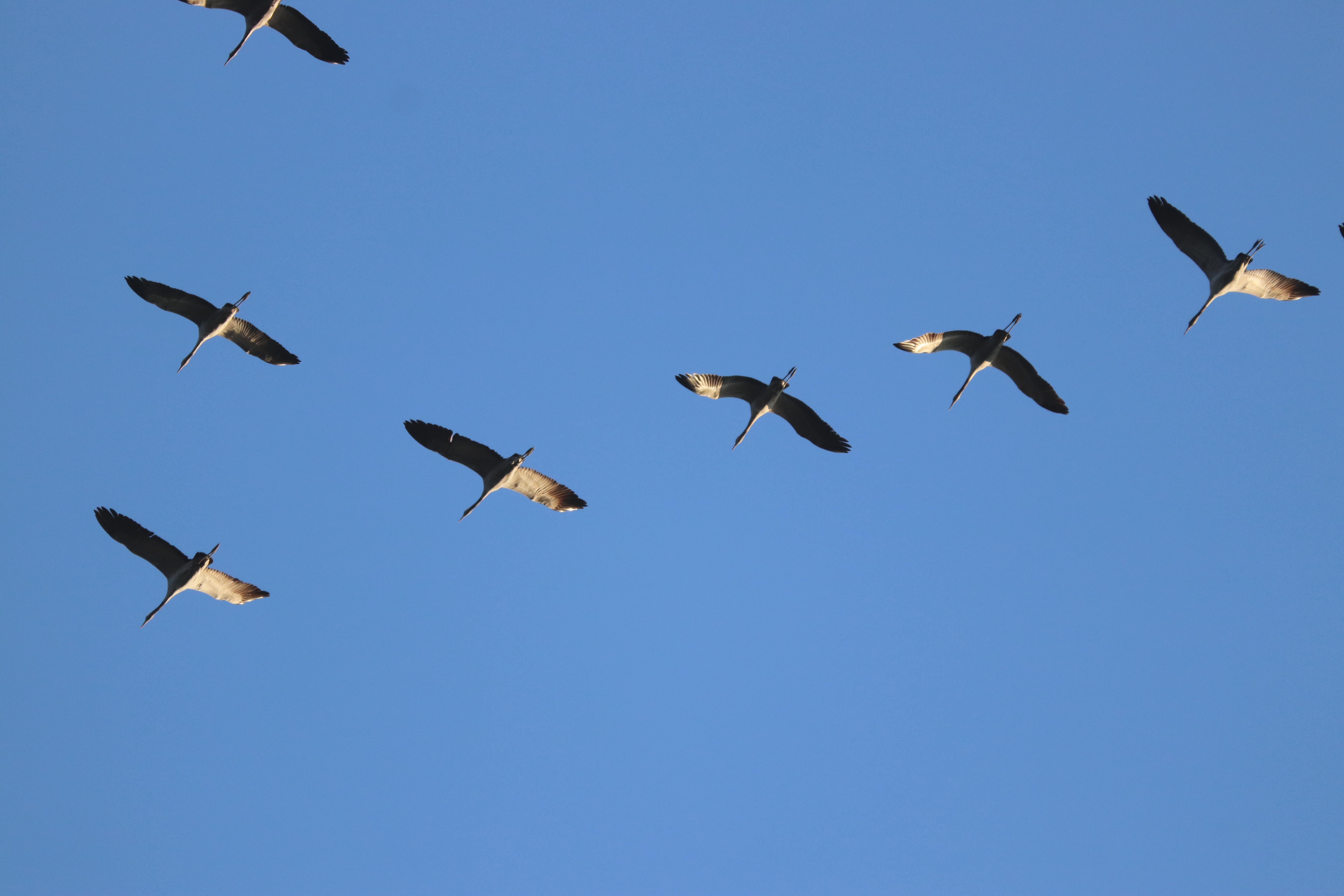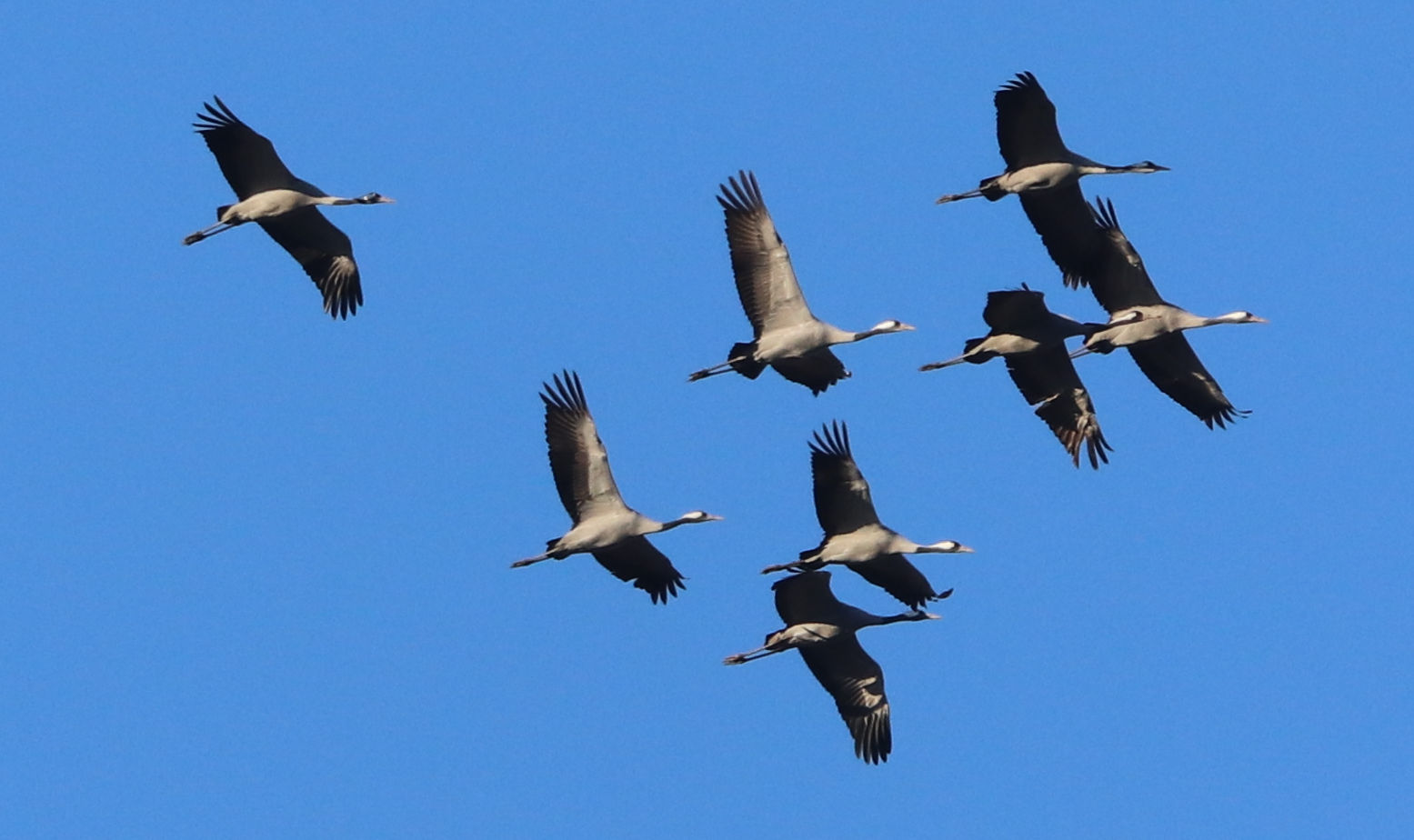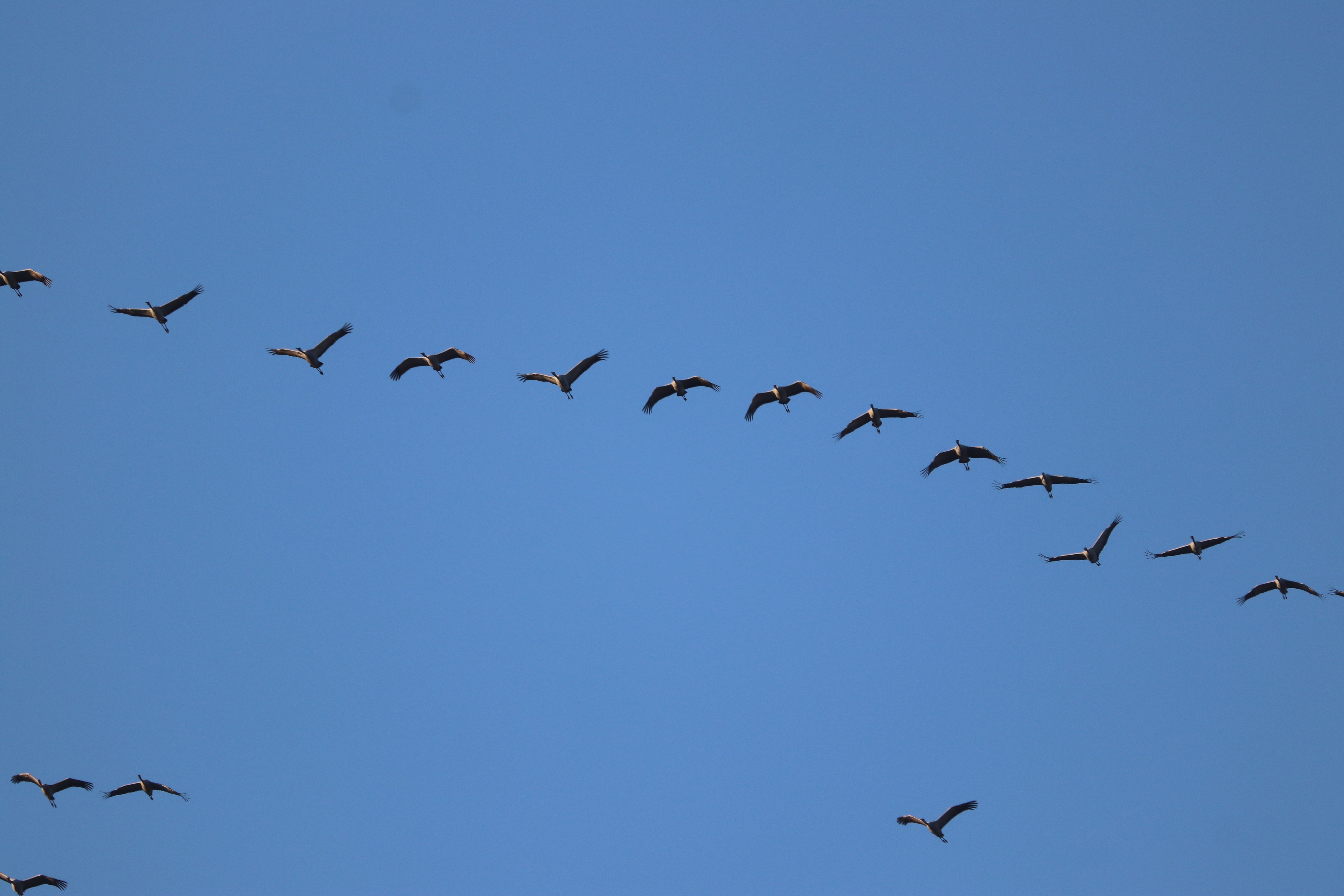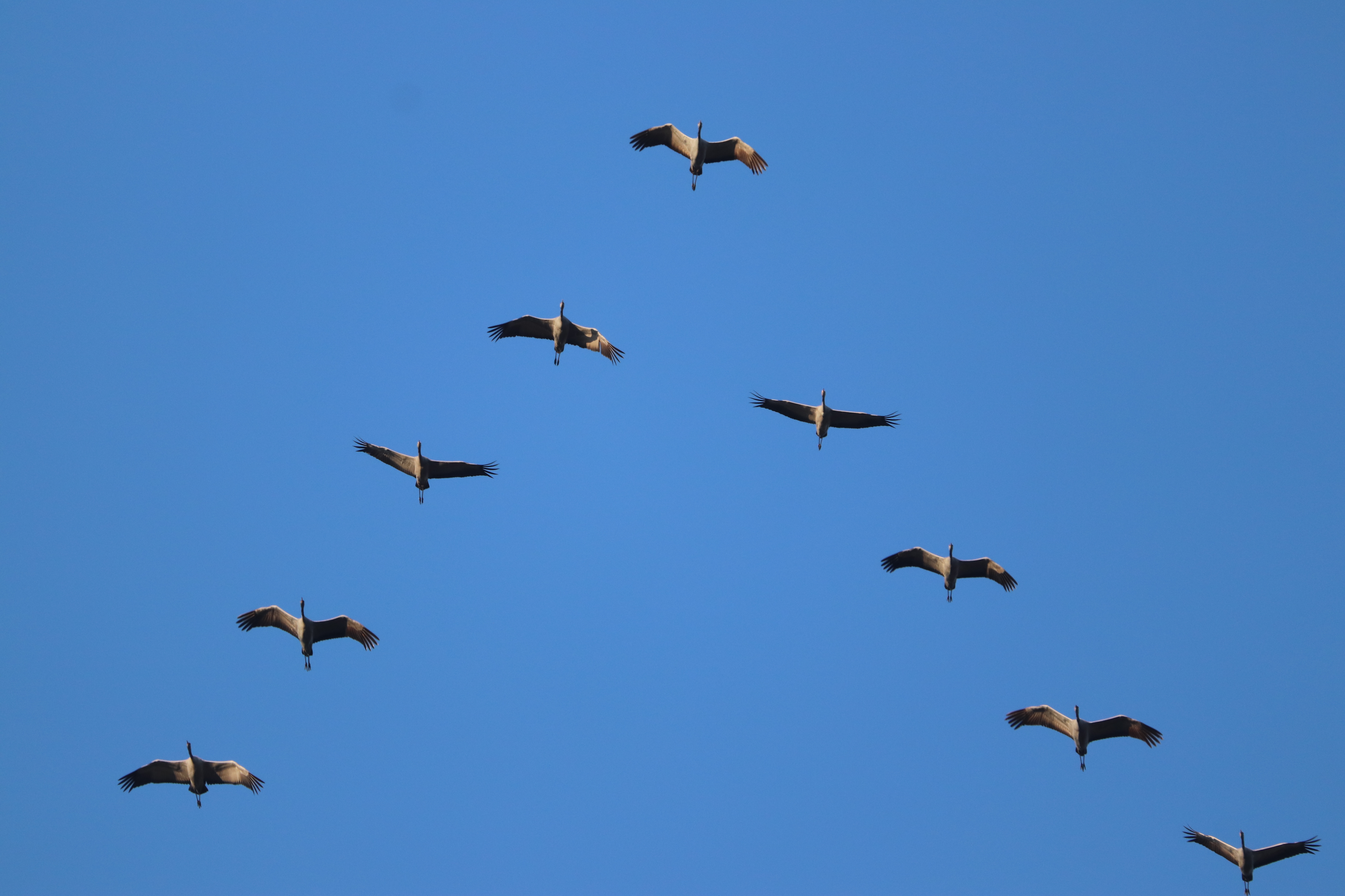 Die Kraniche die am Wochenende geflogen sind, kann man vielleicht als Nachzügler bezeichnen, aber sie waren sehr schlaue Vögel. Denn auch der Wind wehte aus der richtigen Richtung und trieb sie mit Rückenwind in Richtung Südwesten und damit können auf den Weg nach Frankreich und Spanien die Kräfte gespart werden.