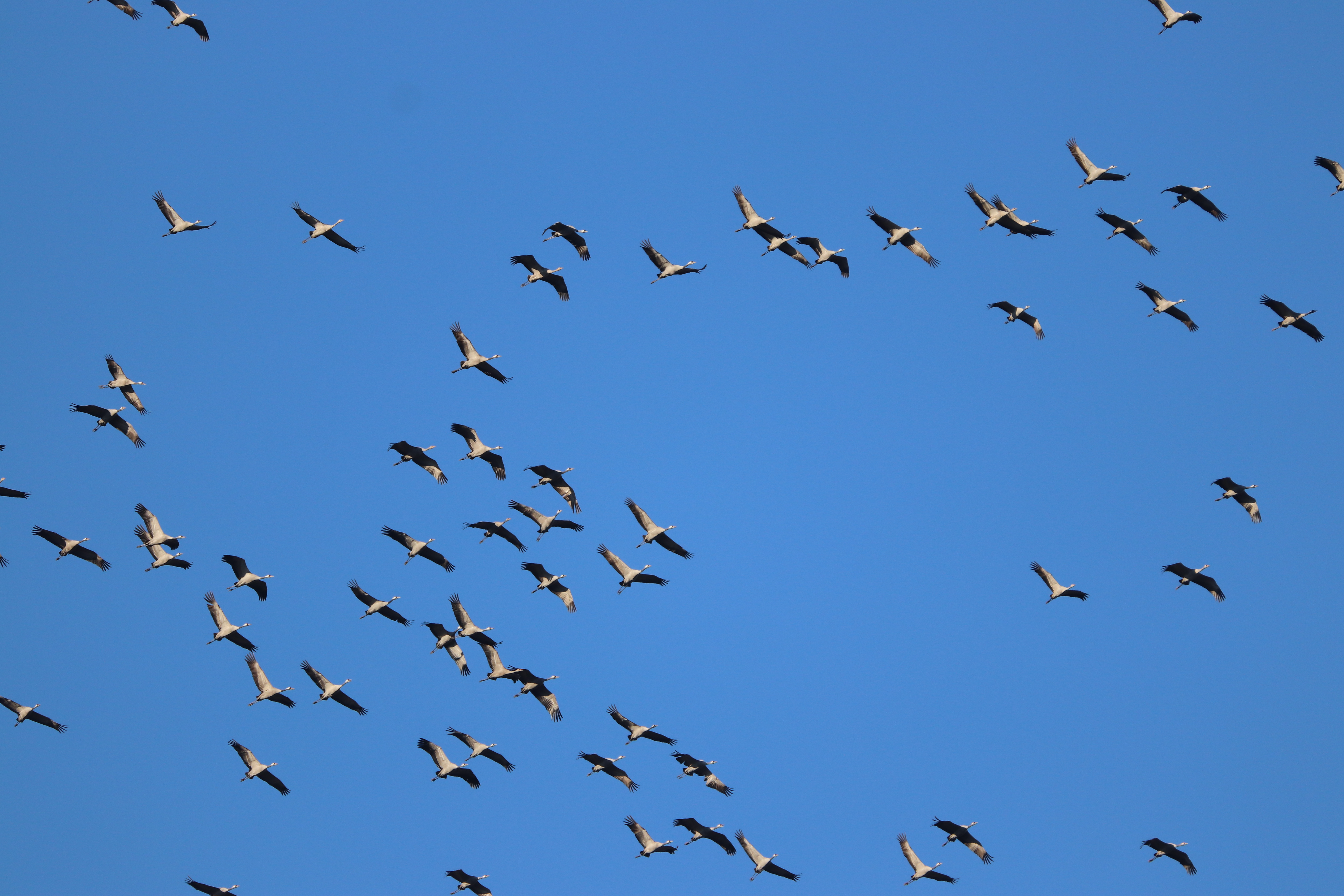 Am Wochenende war bestes Flugwetter. Die Luft war klar und kalt. Keine Wolke am Himmel. Und die Kraniche haben das Wetter genutzt. In den letzten zwei Wochen sind bestimmt schon an die 10.000 Kraniche über NRW in den Süden gezogen. Die Vögel des Glücks waren bei sehr unterschiedlichem Wetter unterwegs. Oft ist die Kälte ein Auslöser für den Start. Und auch der Instinkt der Kraniche hilft ihnen bestimmt, den für sie besten Zeitpunkt zu finden.