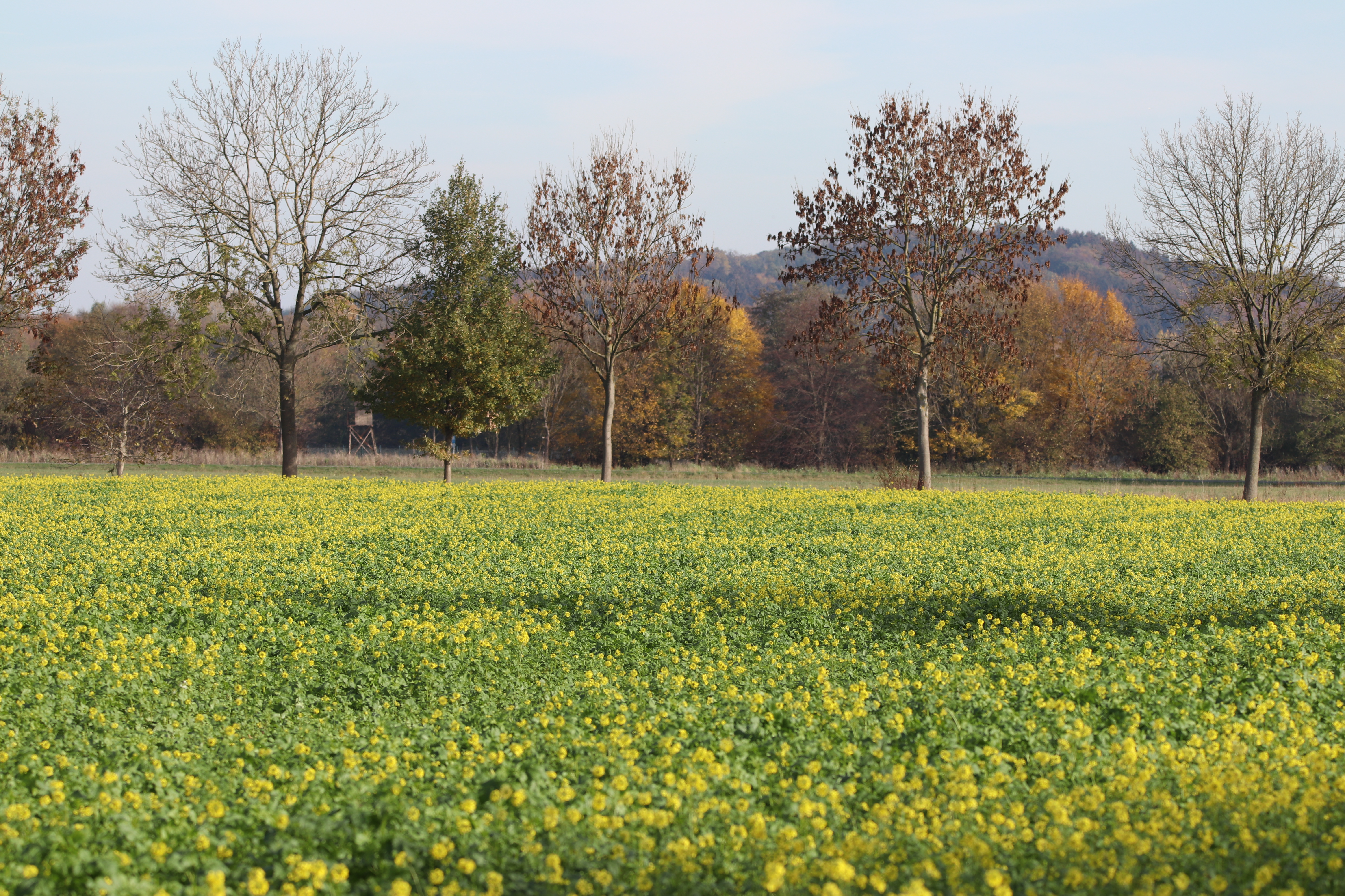 Wegen der Trockenheit haben bereits viele Bäume im Sommer einige Blätter abgeworfen. Und obwohl das passiert ist, kann man beobachten, das viele Bäume jetzt noch ihre Blätter haben. Und das Mitte November! Der Pflaumenbaum, an dem meine Futterstation hängt, war letztes Jahr schon Anfang Oktober fast kahl. Dafür kann man jetzt noch länger die schönen Herbstfarben der Blätter genießen.