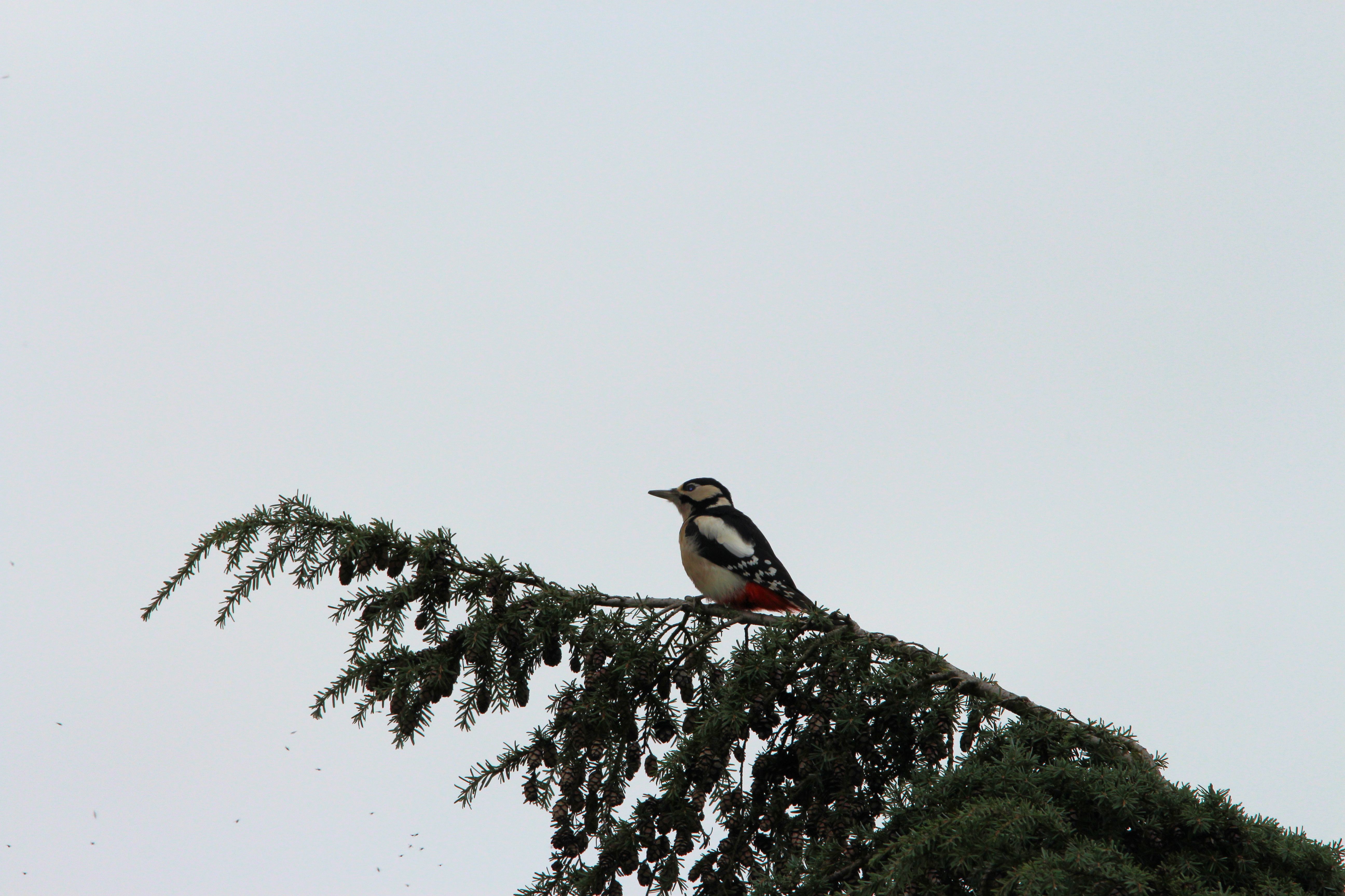 Oft hört man sie auch einfach nur. Manchmal ihre Stimme und oft auch das Trommeln und hämmern an den Bäumen. In den letzten Wochen habe ich den Buntspecht häufiger gesehen. Von meinem Garten aus in Nachbars Garten. Und auch in Langenberg. Oft aber eben aus größerer Entfernung. Denn auch wenn die Spechte in die Gärten kommen und durchaus auch als Kulturfolger gesehen werden können, sie sind doch manchmal sehr scheu und halten ihre Fluchtdistanz ein.