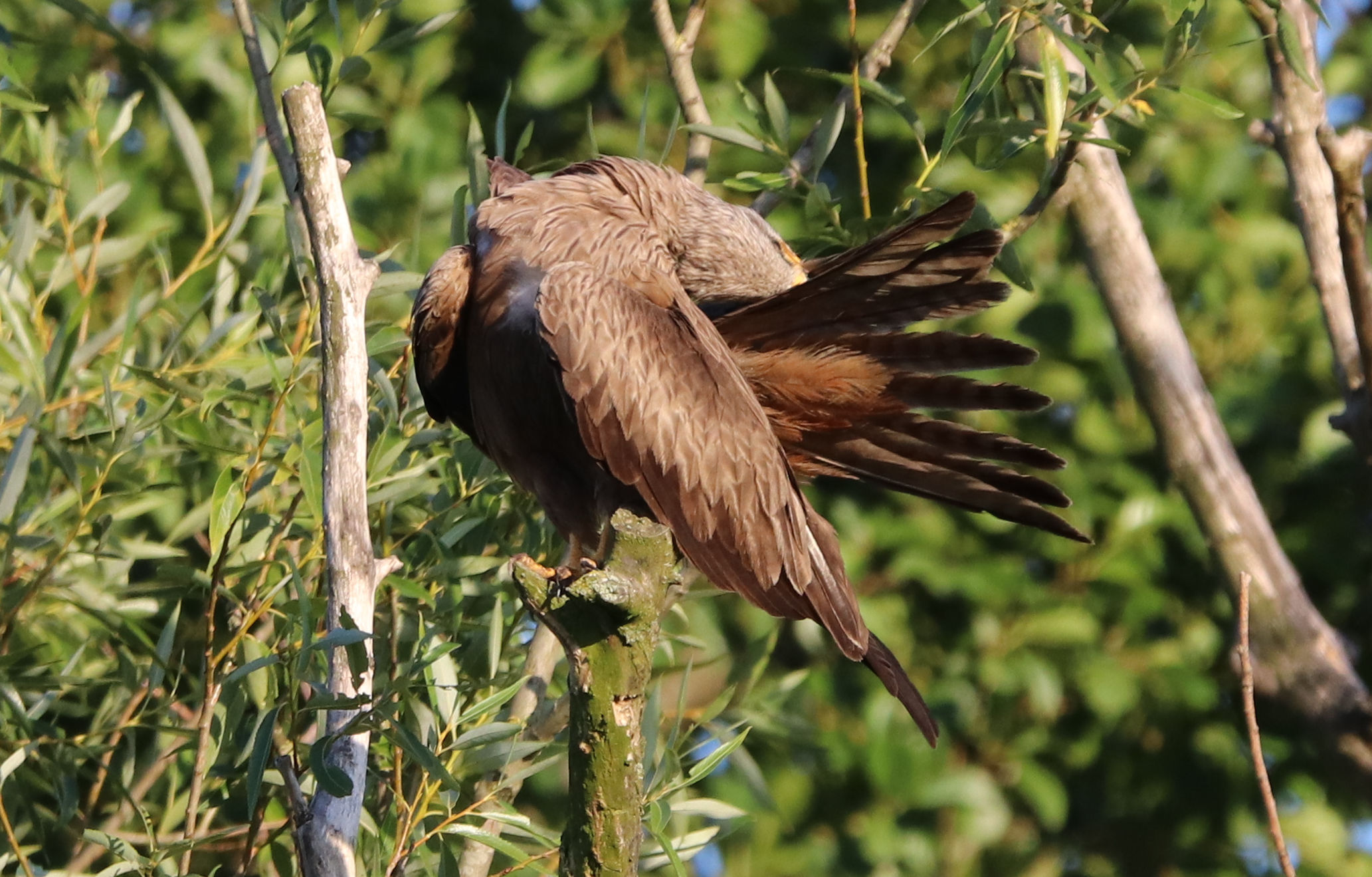 Der Schwarzmilan am Ruhrufer gähnt