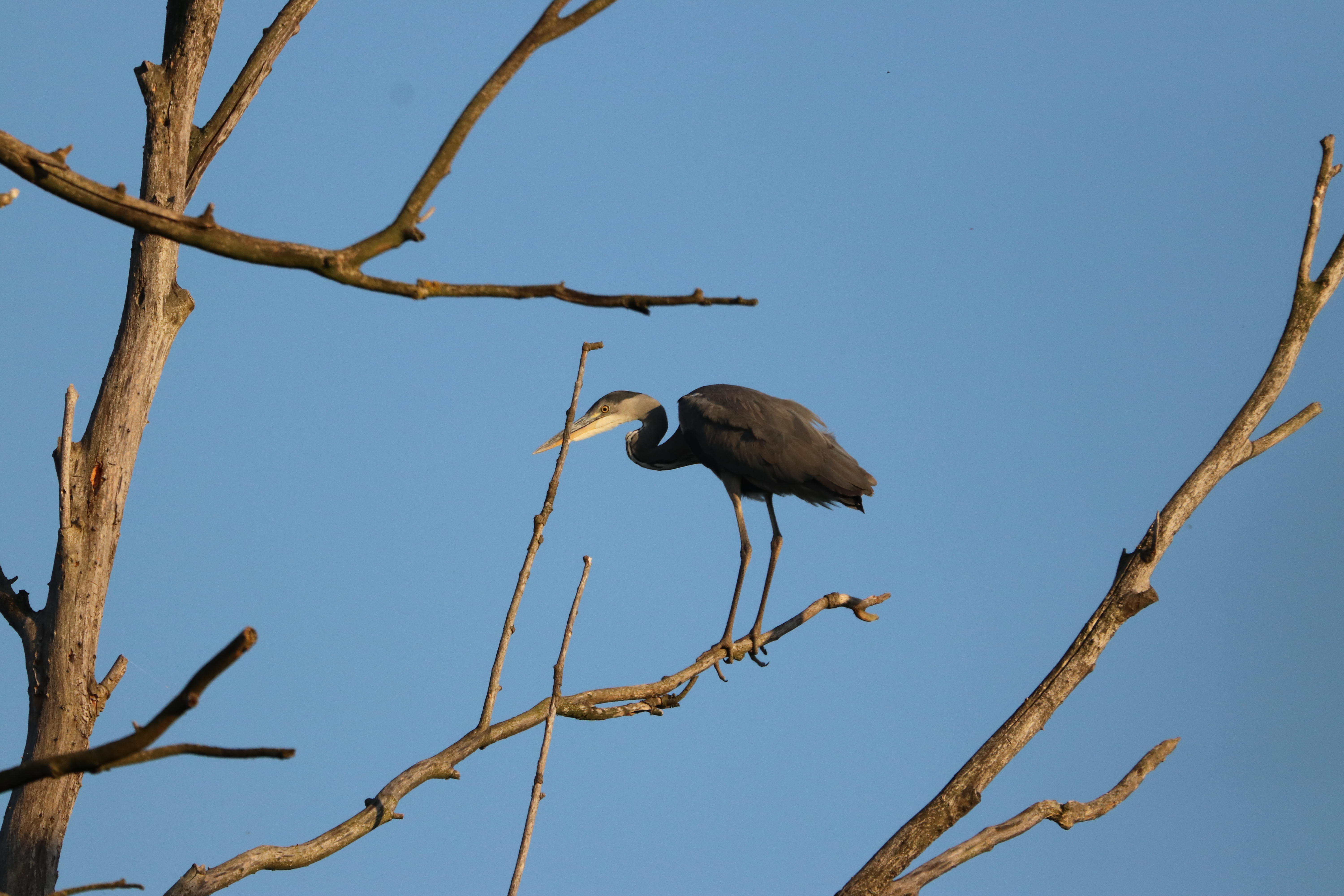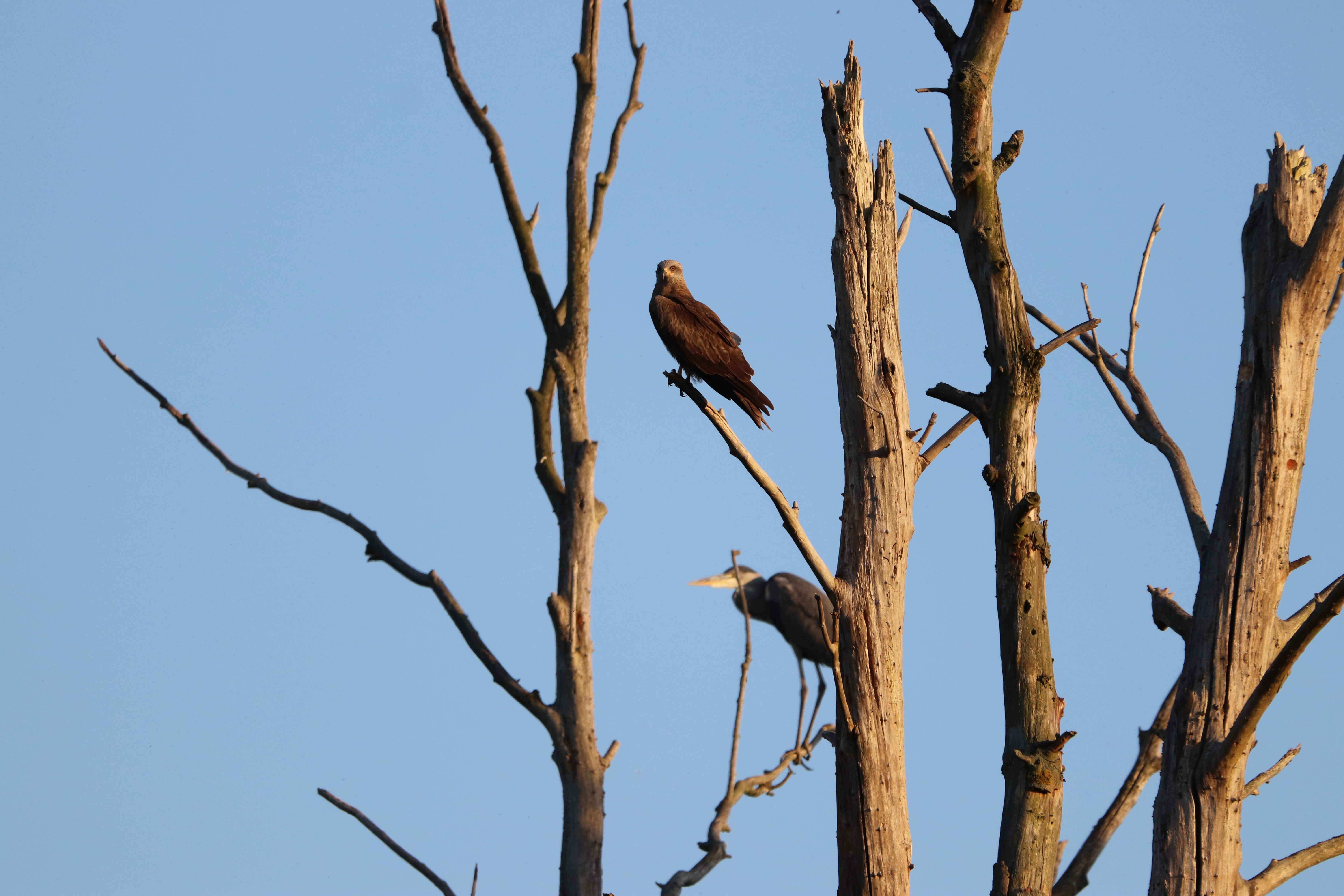 So sassen der Graureiher und der Schwarzmilan zusammen auf dem Baum. Ob sie auch dort geschlafen haben, weiß ich nicht. Ich musste dann auch nach Hause.