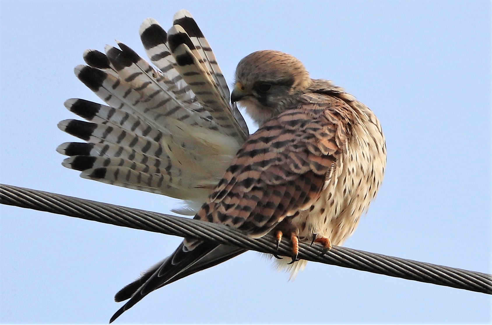 - Das Turmfalken-Weibchen muss eine Schwanzfeder richten