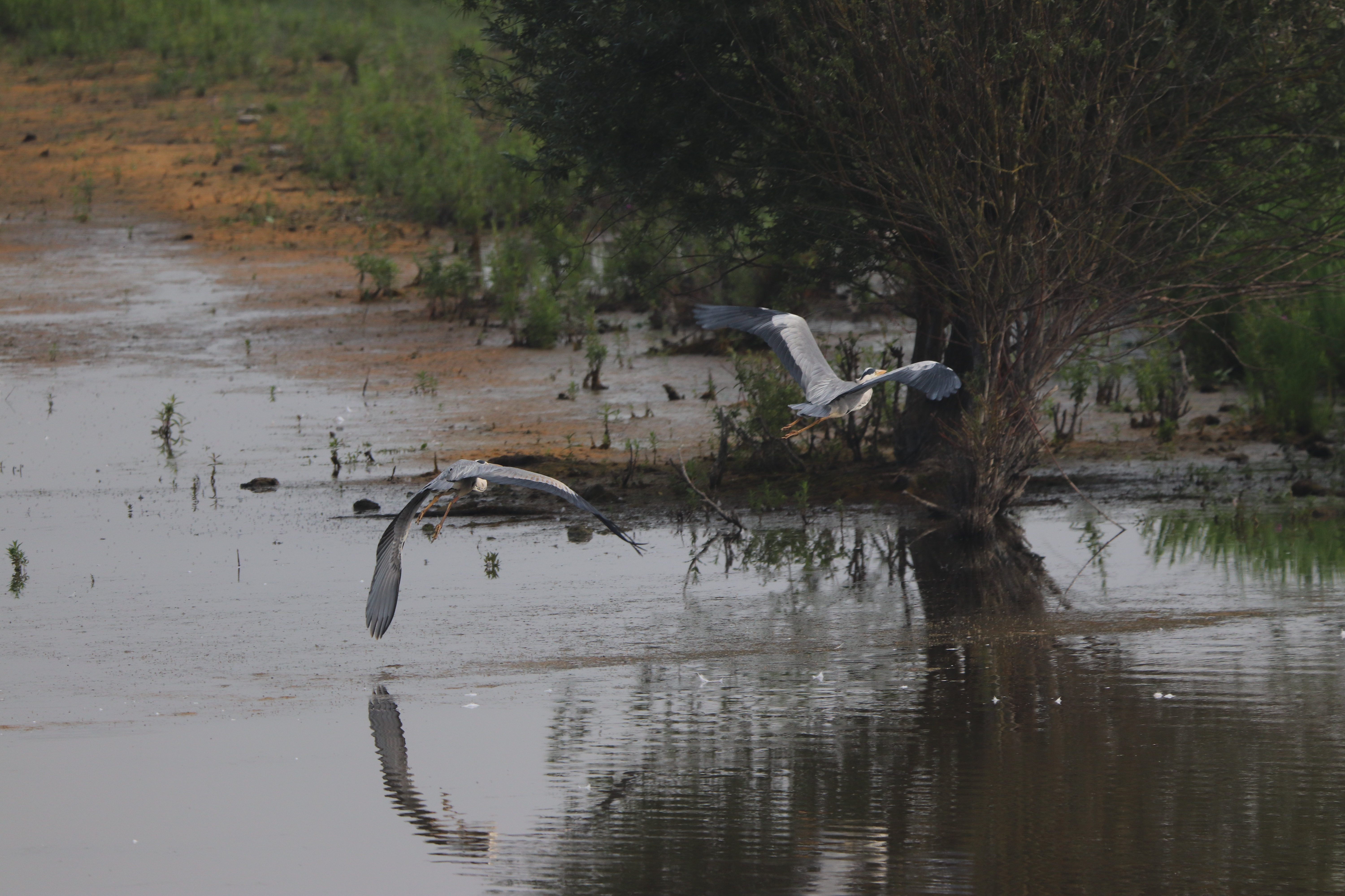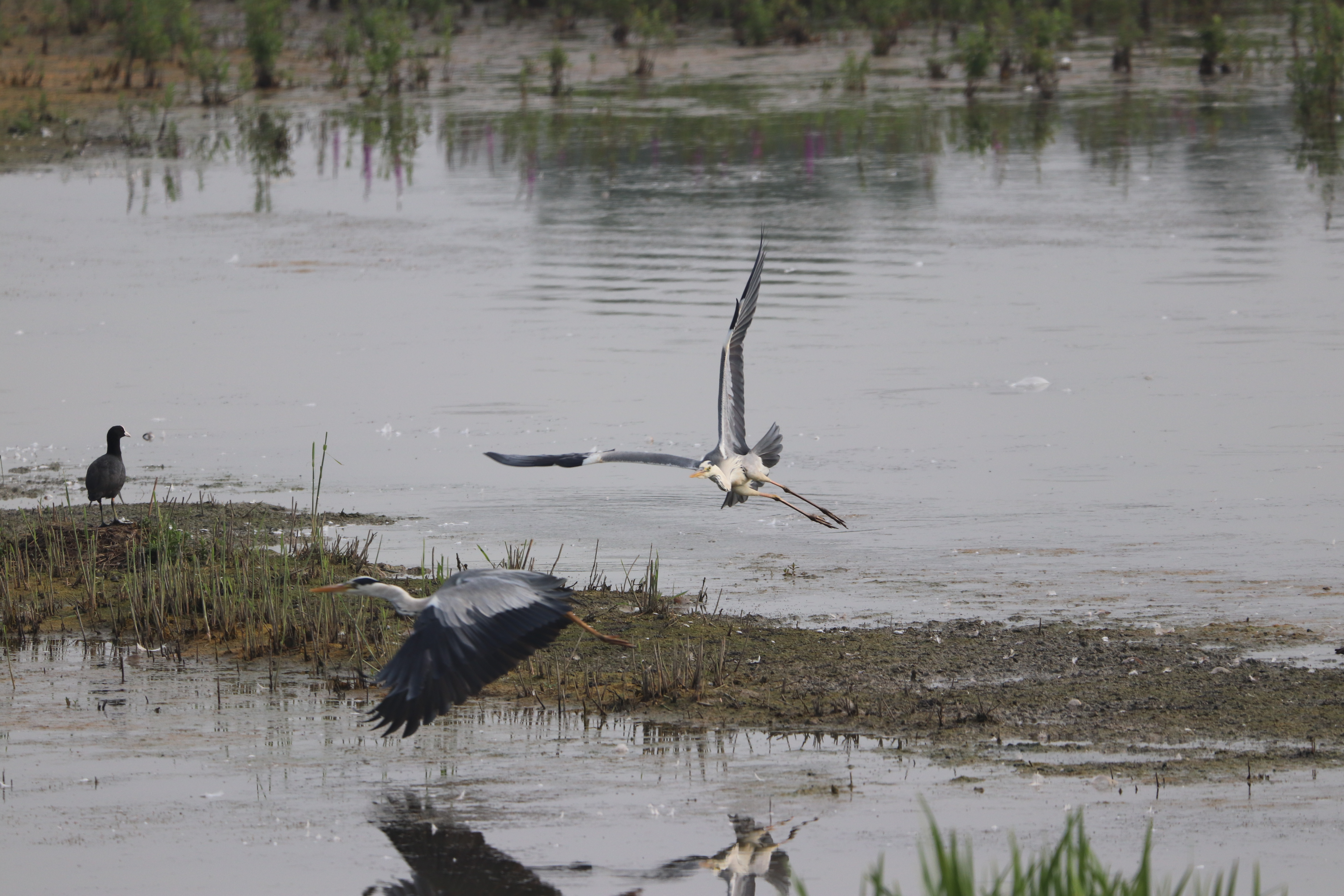 - Oft jagen sich aber auch zwei Reiher im Flug