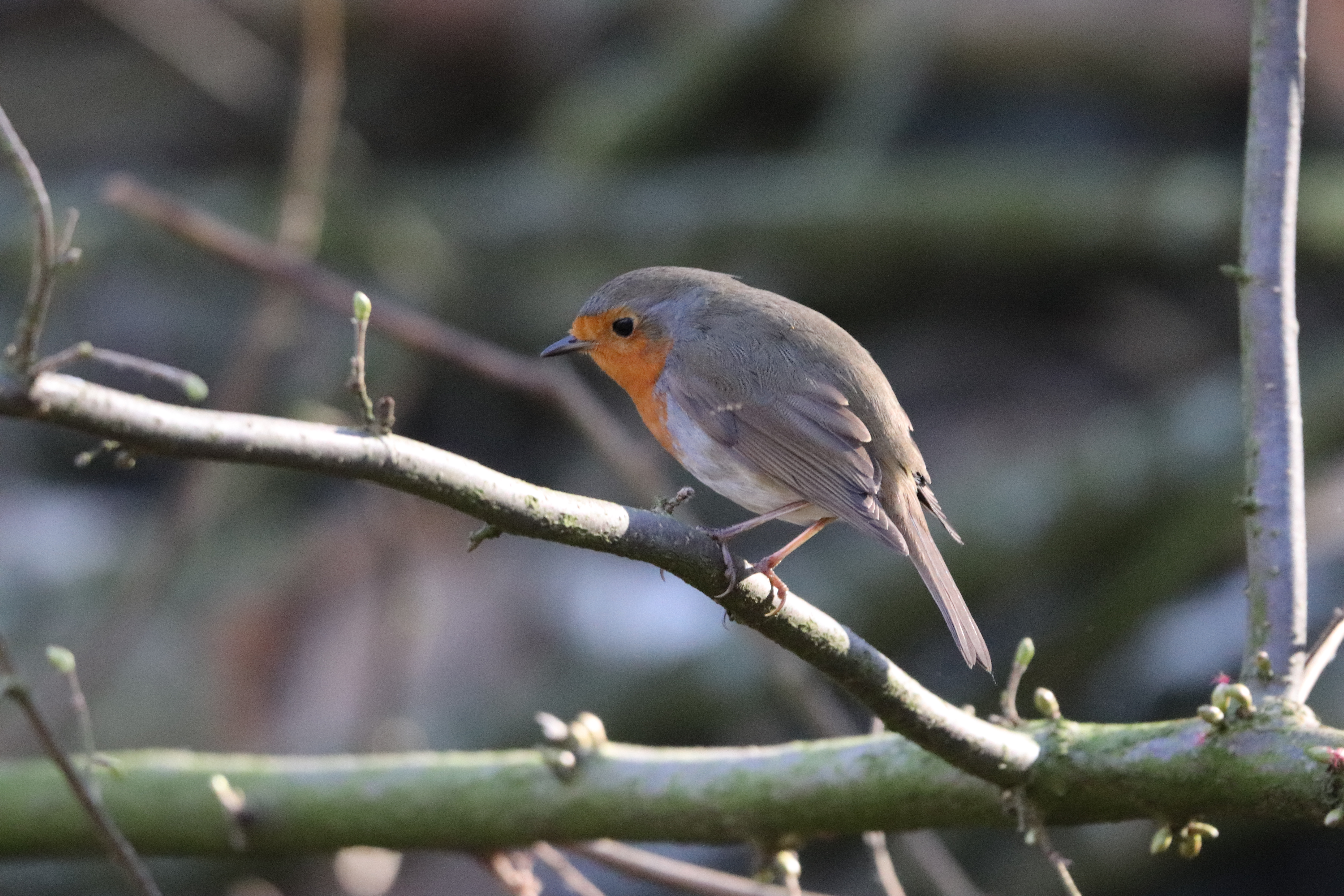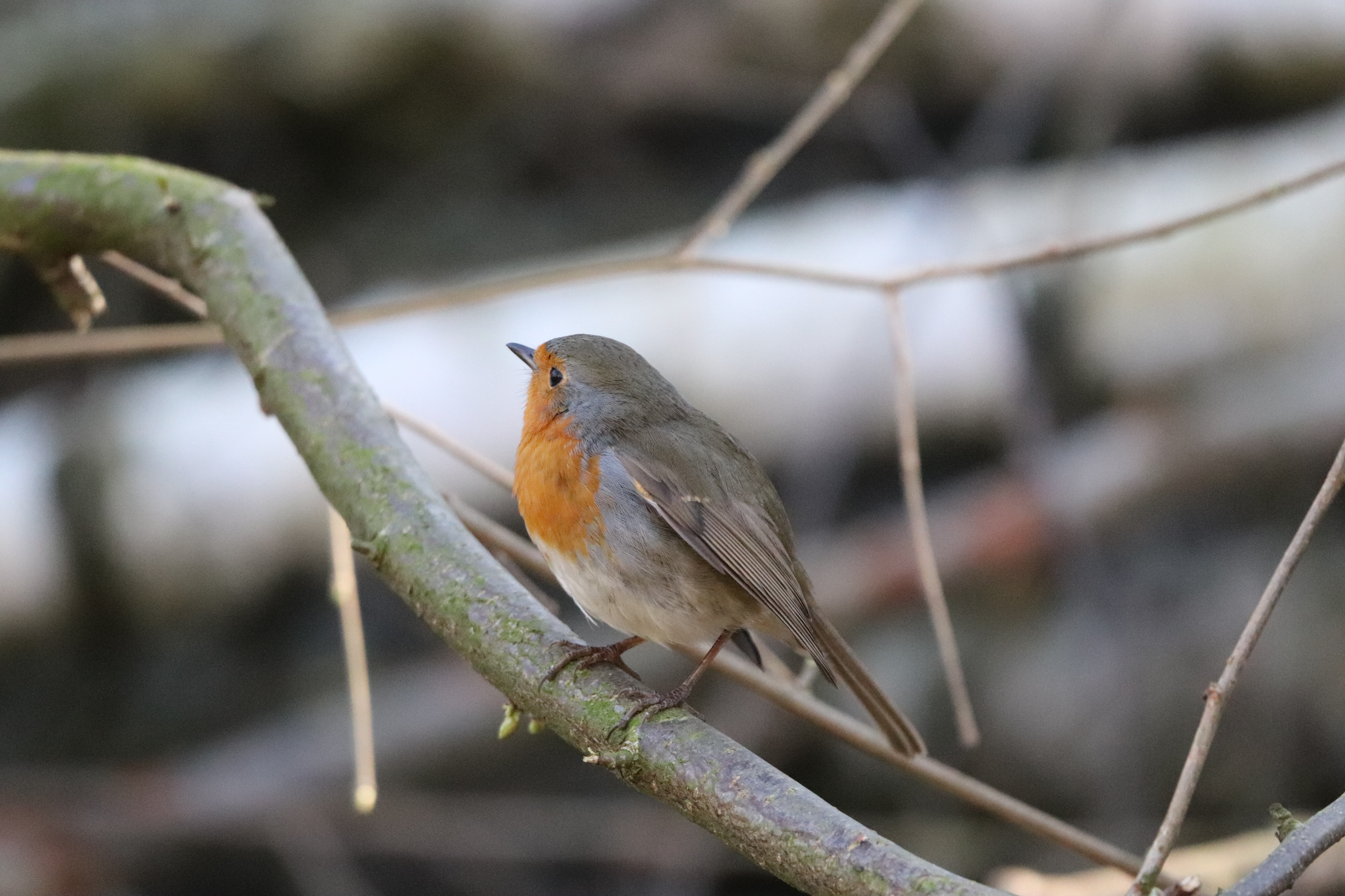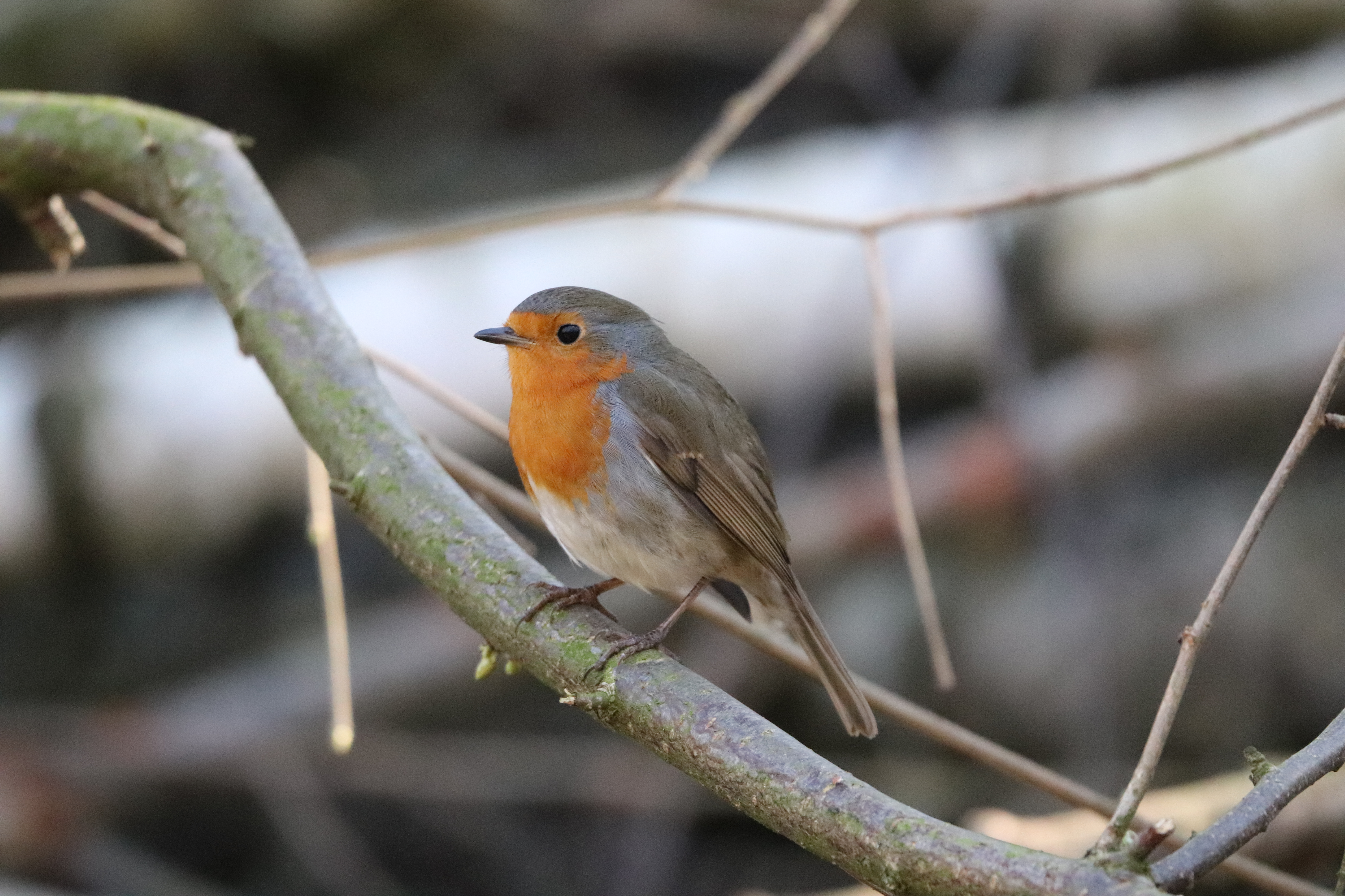Seit etwa einem Monat sehe ich regelmäßig so ein Rotkehlchen in einem lichten Waldstück. Immer in der Nähe des Weges. Es kommt wirklich sehr dicht heran und bleibt auch ruhig sitzen. Ein sehr dankbares Motiv für einen Fotografen. Aber bestimmt auch eine Attraktion für jeden Waldspaziergänger.