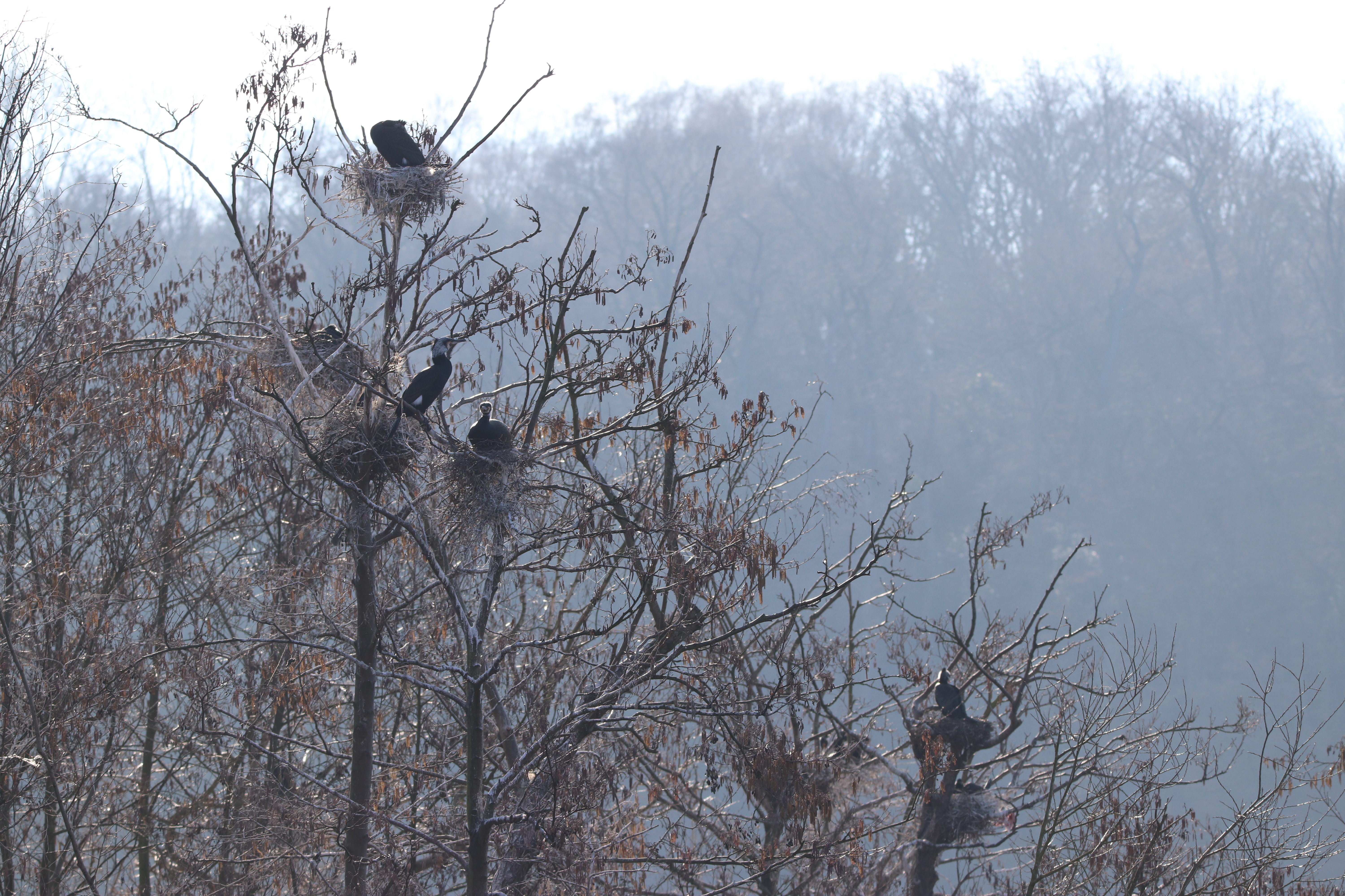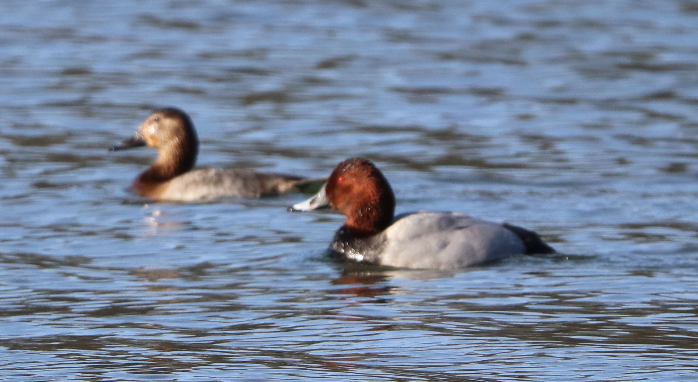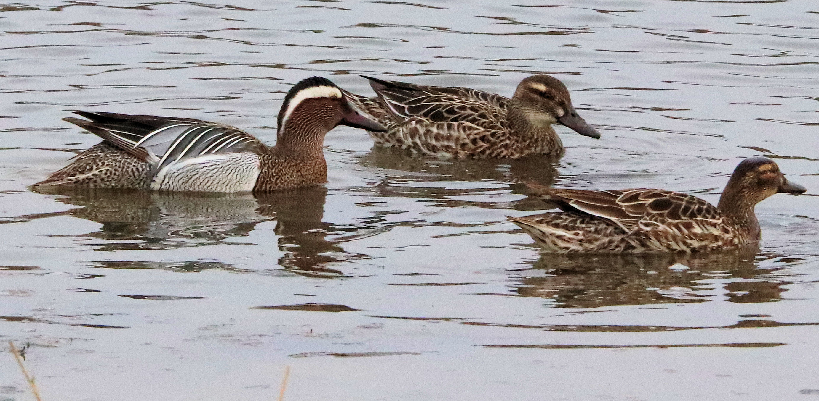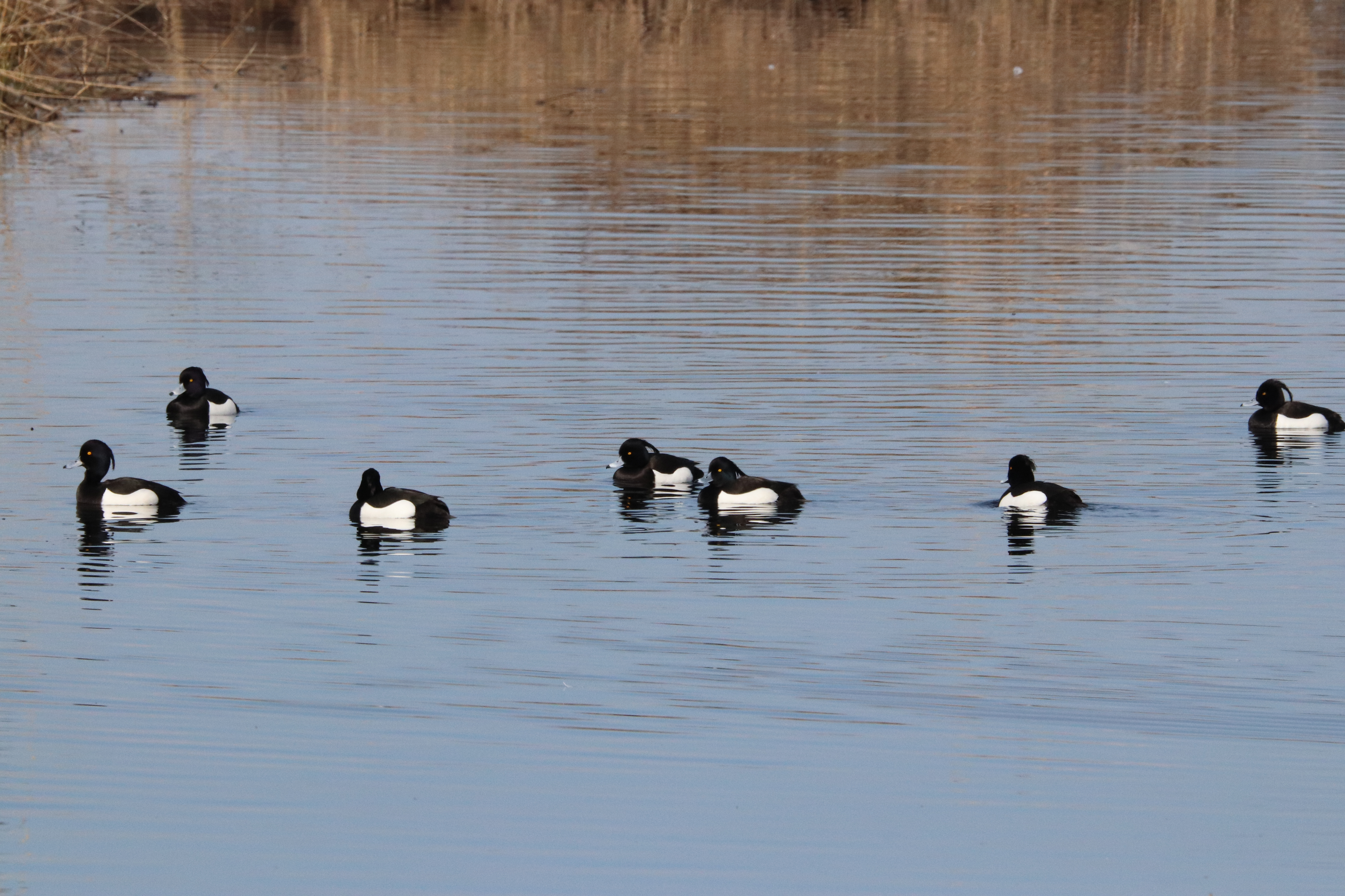 - Zwei Männchen vom letzten Jahr. Ein weiteres Kolbenenten-Paar ist noch in den Rieselfeldern, ich konnte es am Samstag aber nicht sehen. Ein weiteres Paar wurde am Sonntag in der Disselmersch an der Lippe gesehen. Vielleicht das dritte Paar, das weiter gezogen ist.