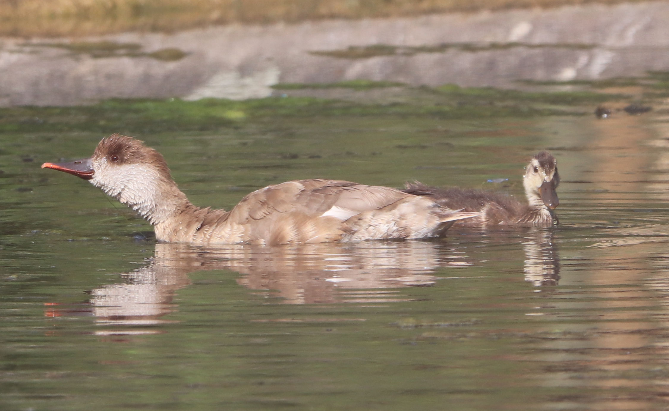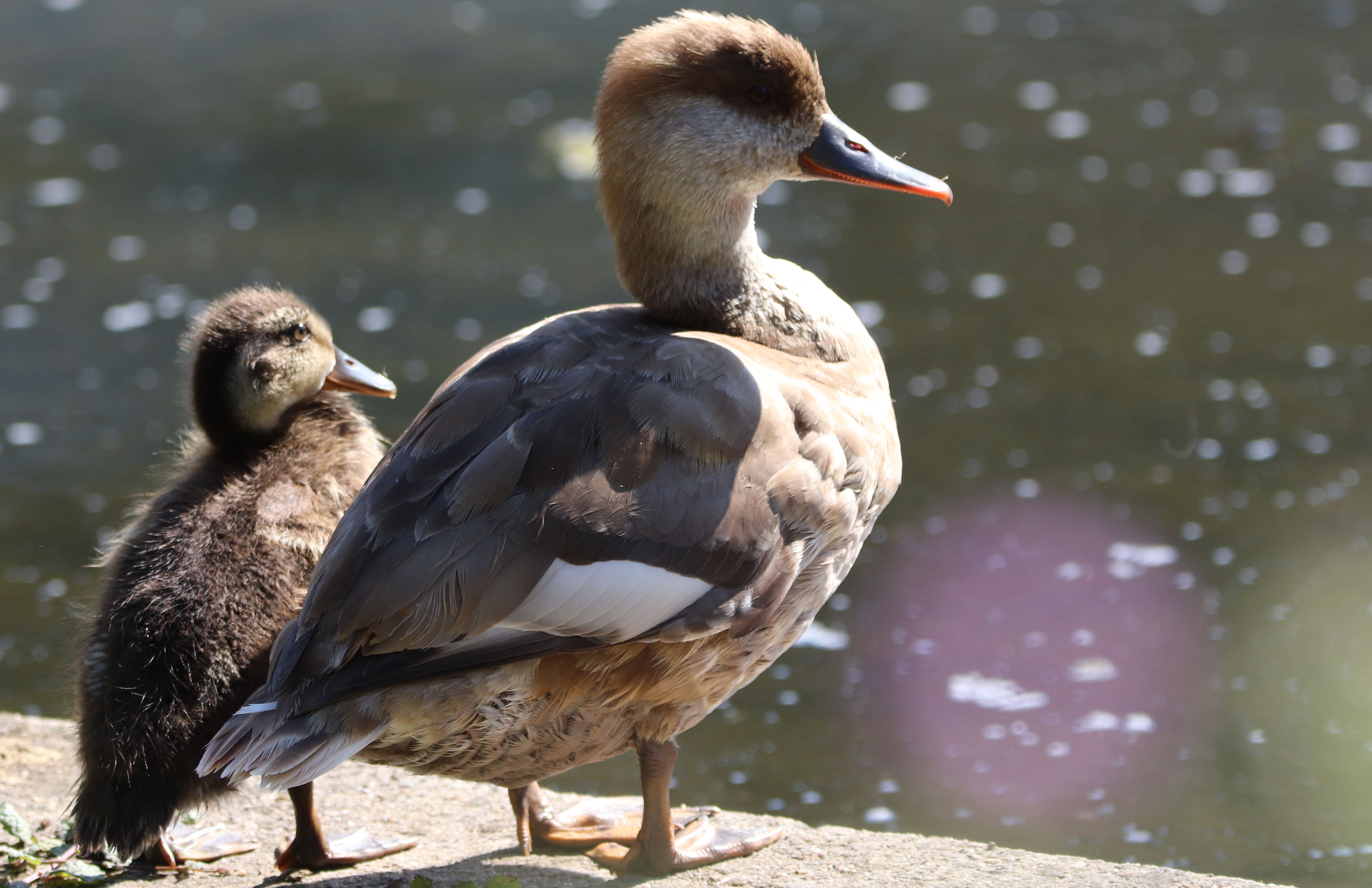 - Der Reiherenten-Erpel passt auf seine Familie auf