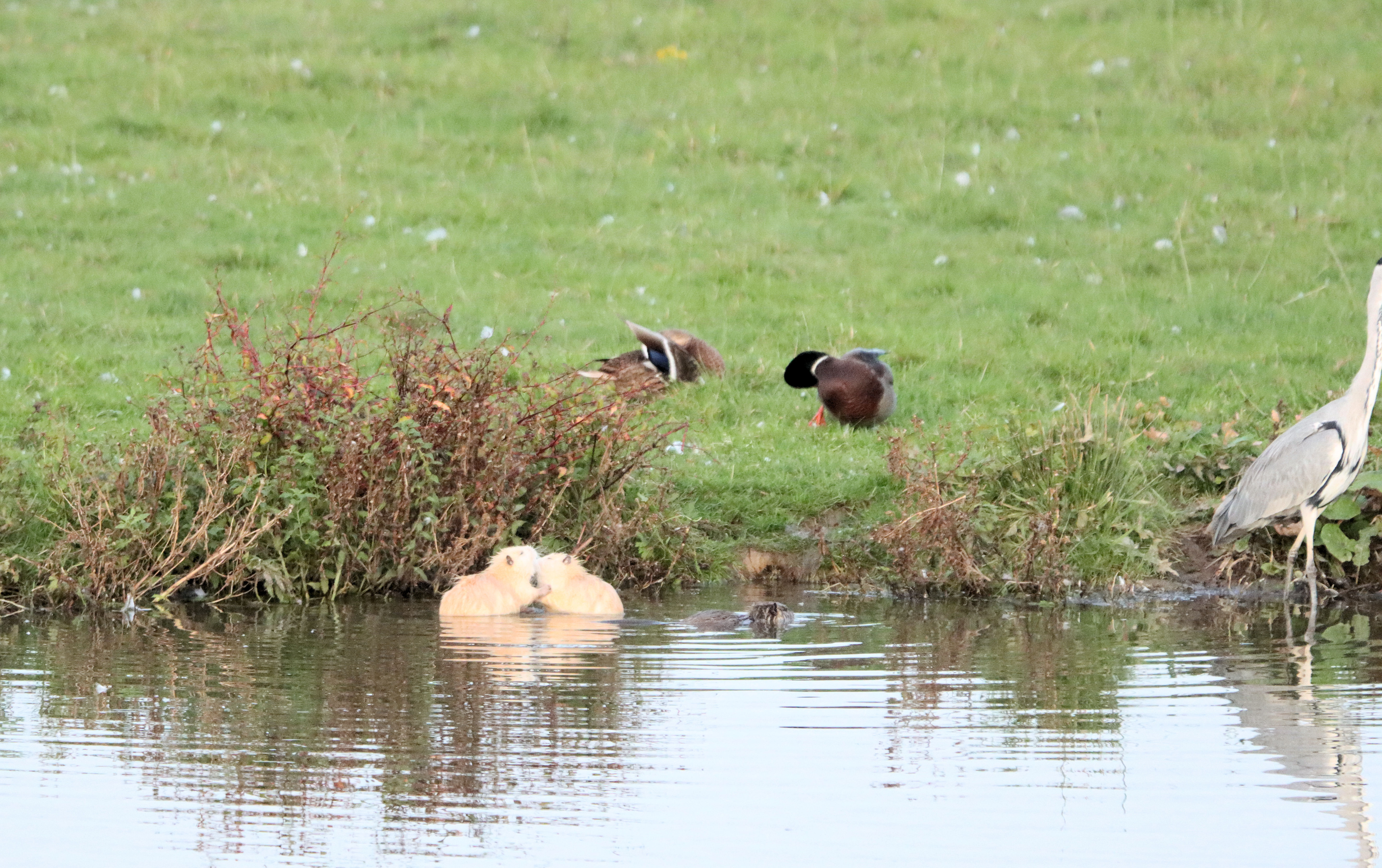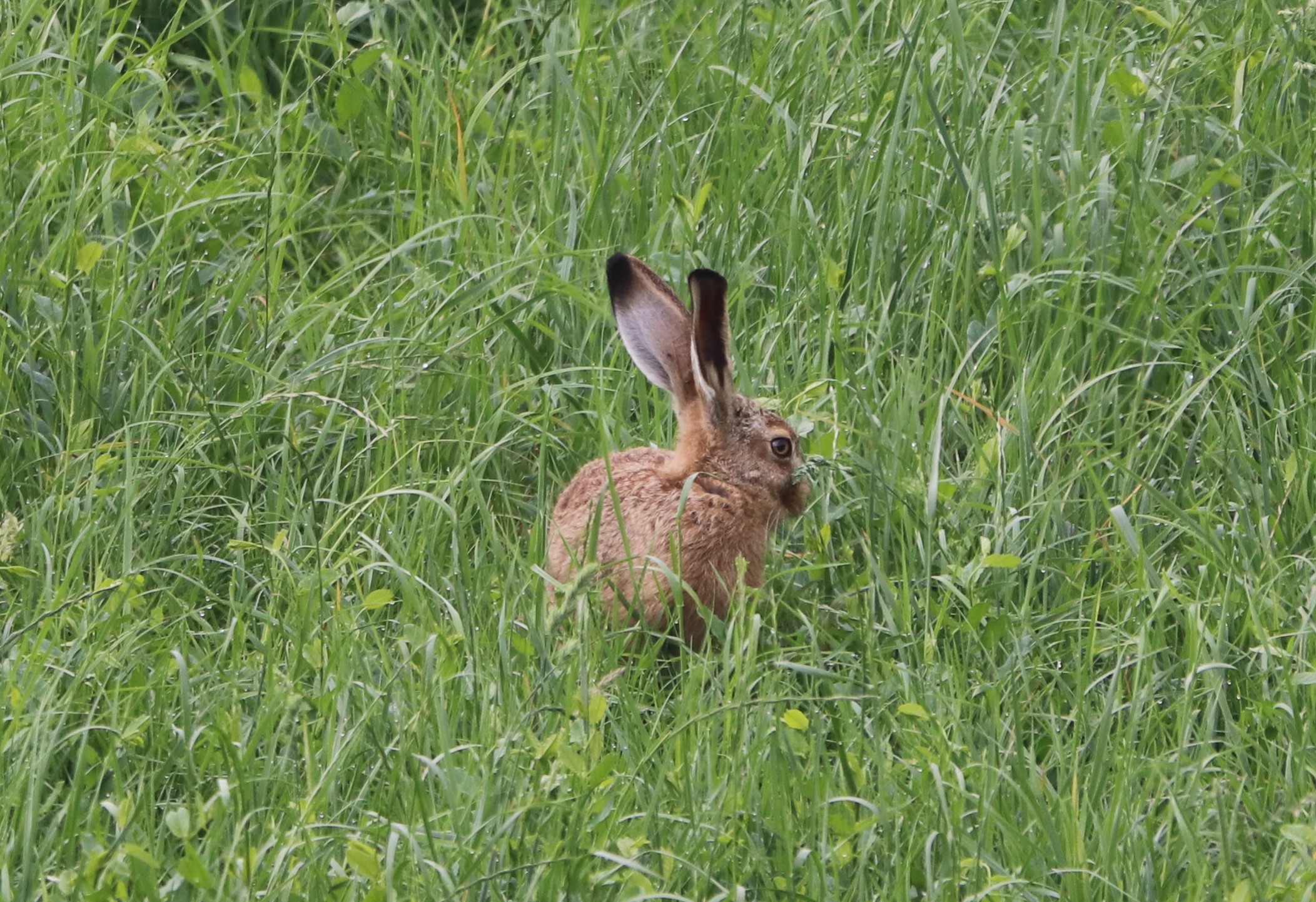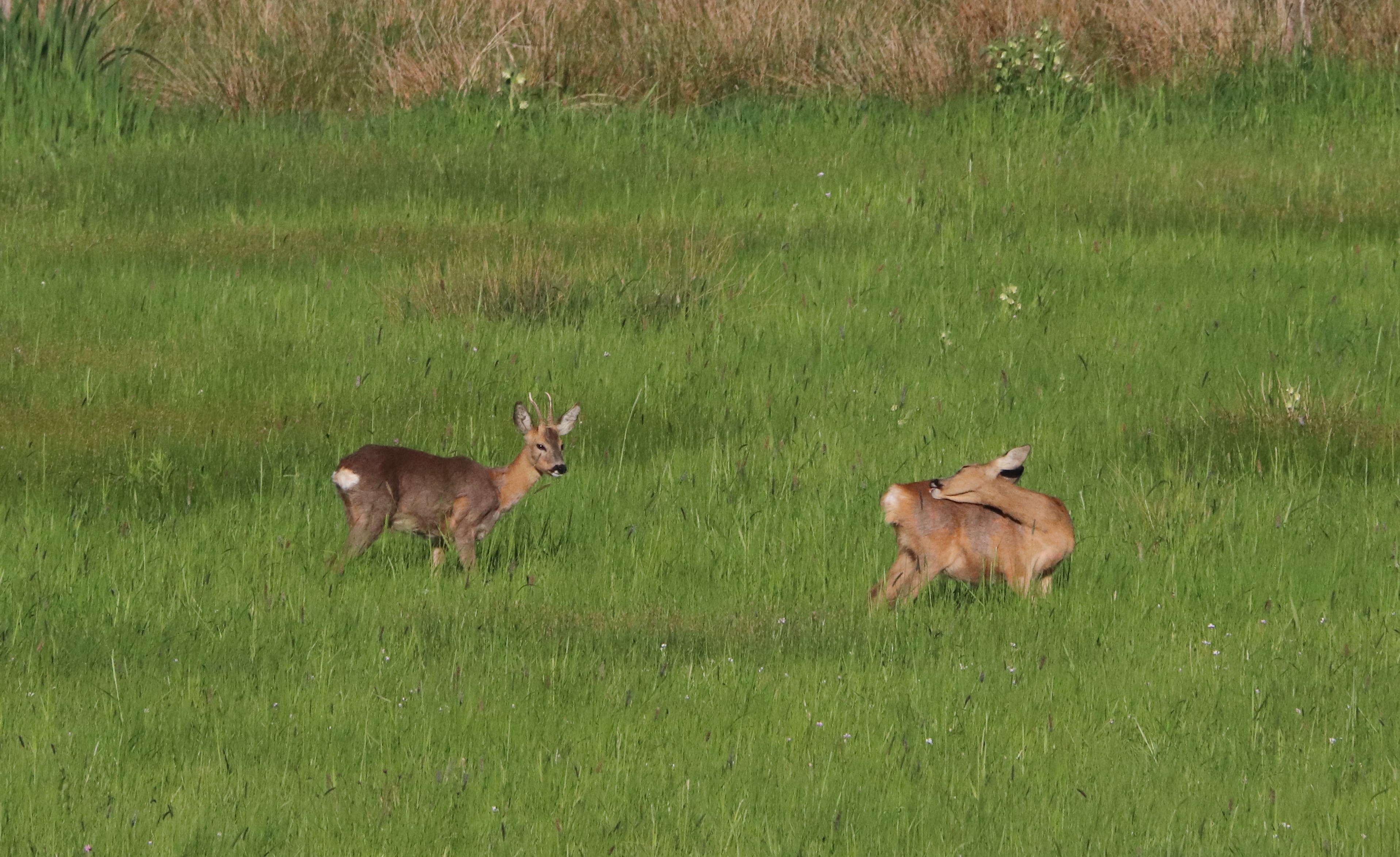 Man hört überall das Quaken der Frösche und ein Graureiher hatte eine Wühlmaus gefangen. Nahrung sollte also noch genug da sein. Viel Vogelnachwuchs war sonst leider nicht zu sehen. Das Gras stand aber auch sehr hoch.