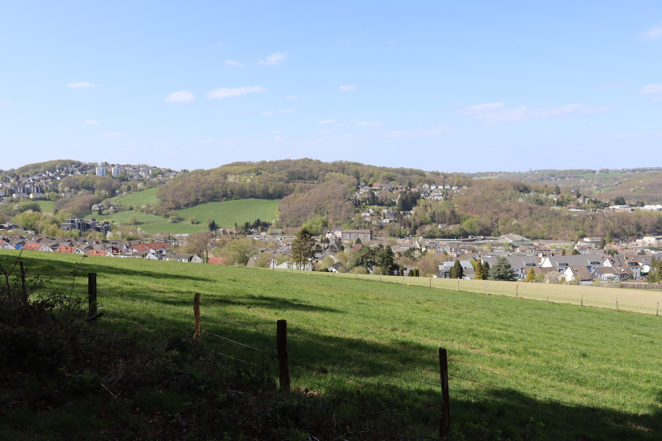 Schon auf dem Weg den Hordtberg hoch, sah ich zwei Mäusebussarde zusammen am Himmel kreisen. Es ist Balzzeit und da hatte sich vielleicht schon ein Paar gefunden. Etwas später sah ich einen Mäusebussard, der auch nicht allein war. Allerdings hatte er ziemlich lästige und aggressive Begleitung. Zwei Rabenkrähen hassten den Bussard und verfolgten ihn im Flug. Sie wollten ihn verjagen und eine Krähe verfolgte ihn über eine ganze Strecke und der Mäusebussard verzog sich in ein Seitental und versteckte sich erstmal in einem Baum. Erstmal Ruhe vor den Rabenkrähen haben, war in diesem Moment wohl seine Absicht.
