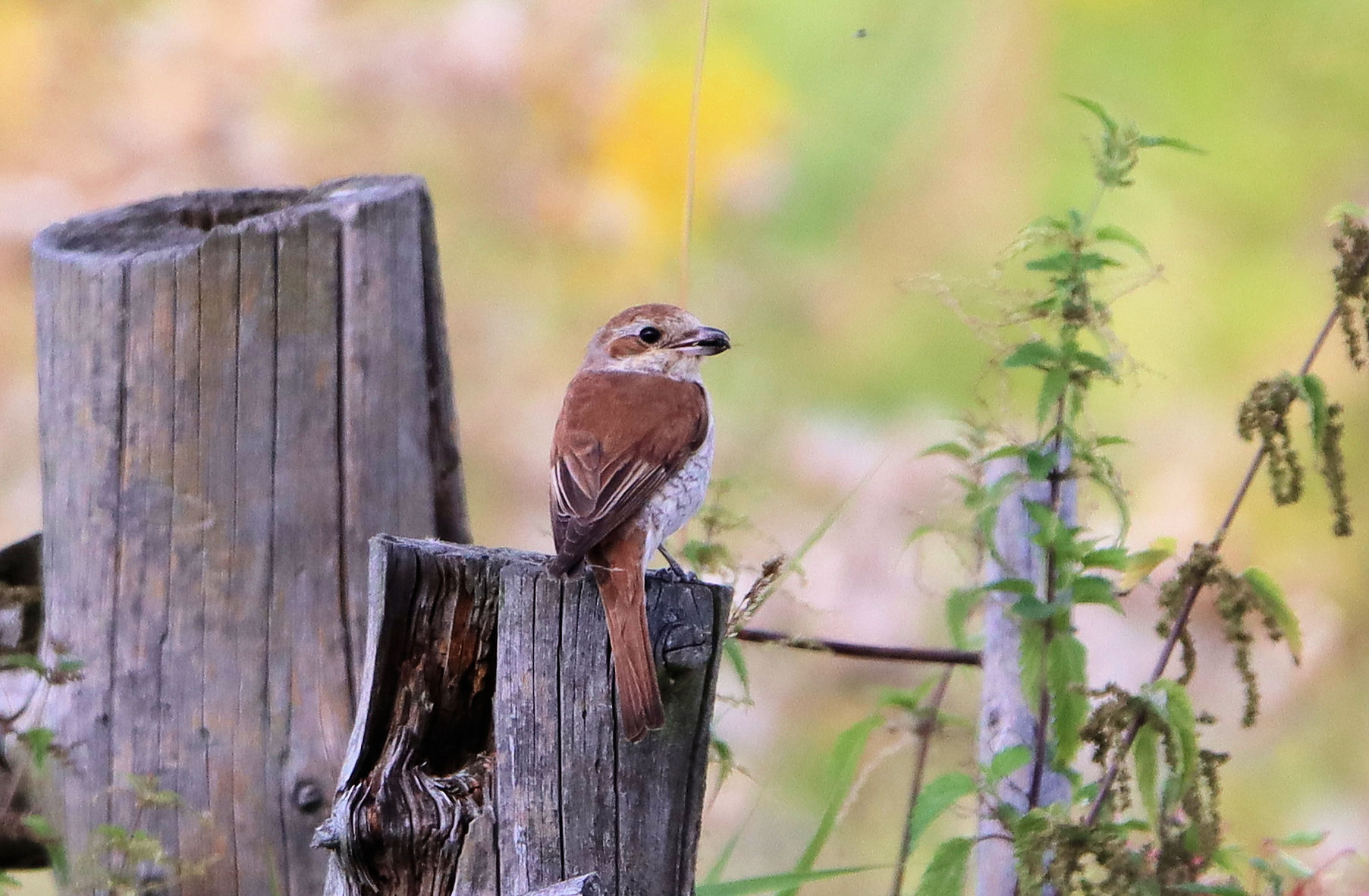 Der erste einsame Jungvogel den ich sichtete war ein Neuntöter-Weibchen. Warum manche Vögel noch länger bleiben ist schwer zu sagen. Jeder Vogel ist halt anders. Da gibt es unterschiedliche Charaktere. Sie wird den Weg in den Süden dann halt später finden. Zwischendurch hat sie auf jeden Fall immer wieder erfolgreich Insekten gefangen.
