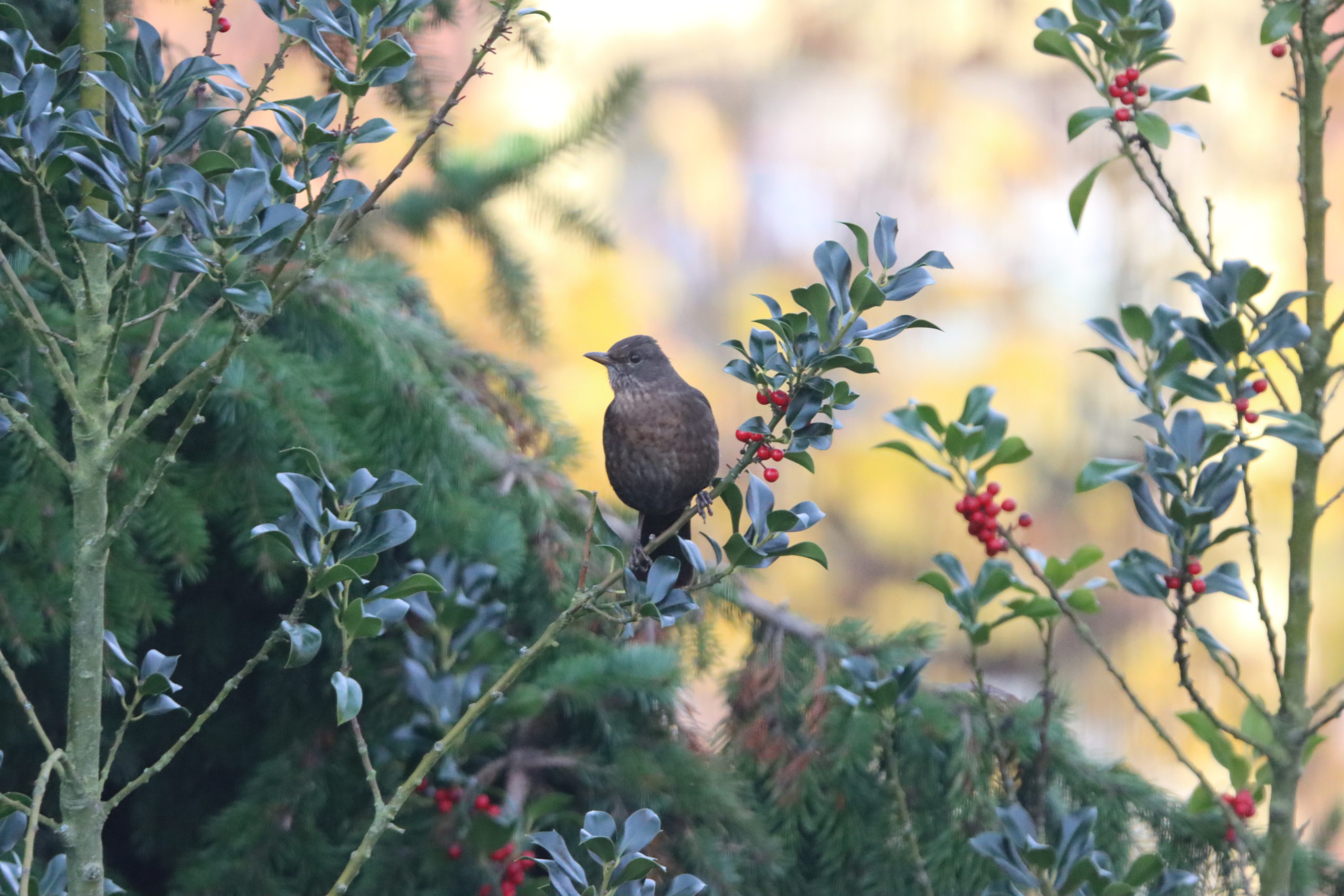 Vogelzählung im Winter : Ein Gimpel Weibchen im Garten ist schon eher selten