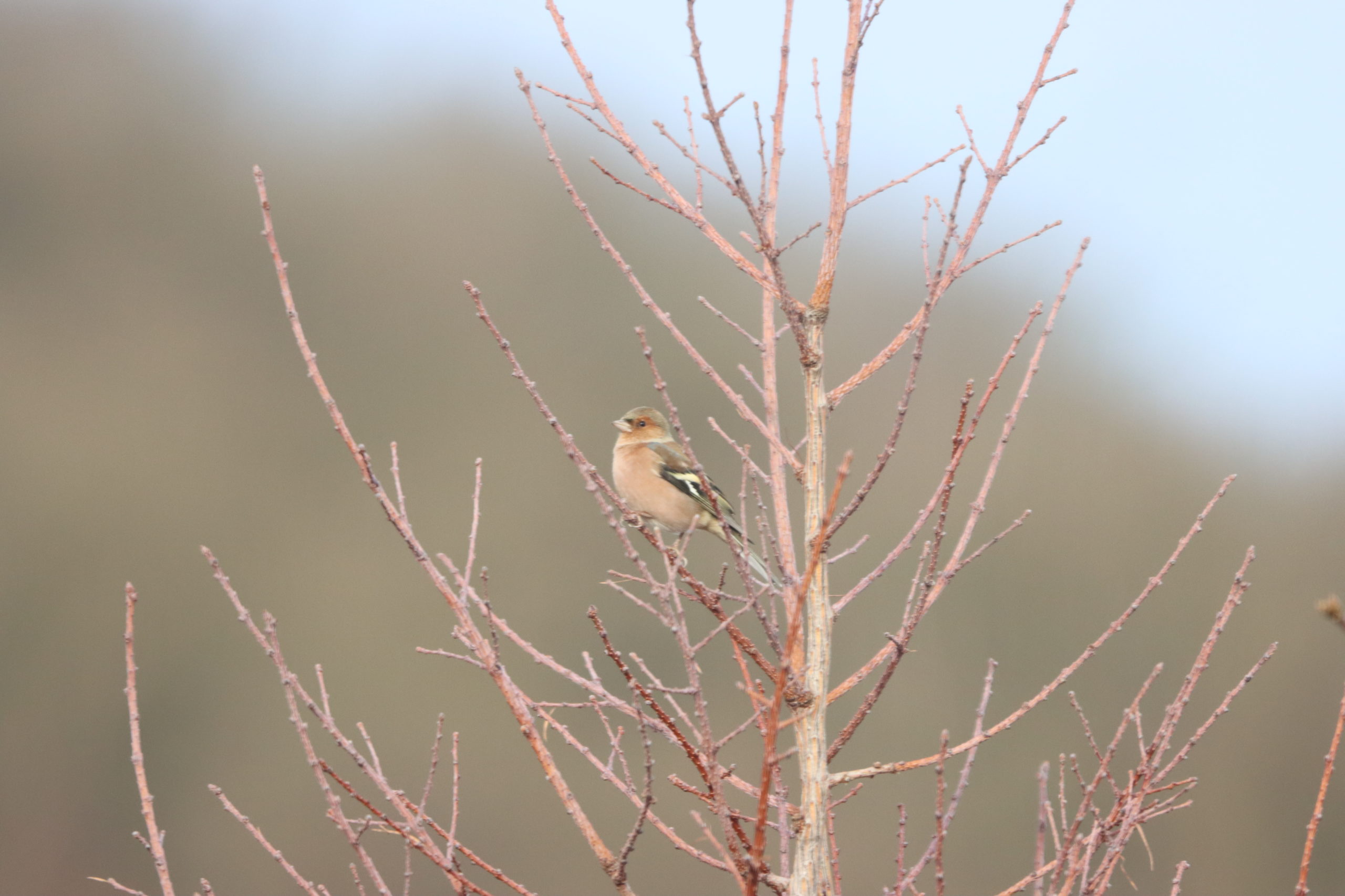 - Das Buchfink Weibchen sieht mal nach dem Gatten
