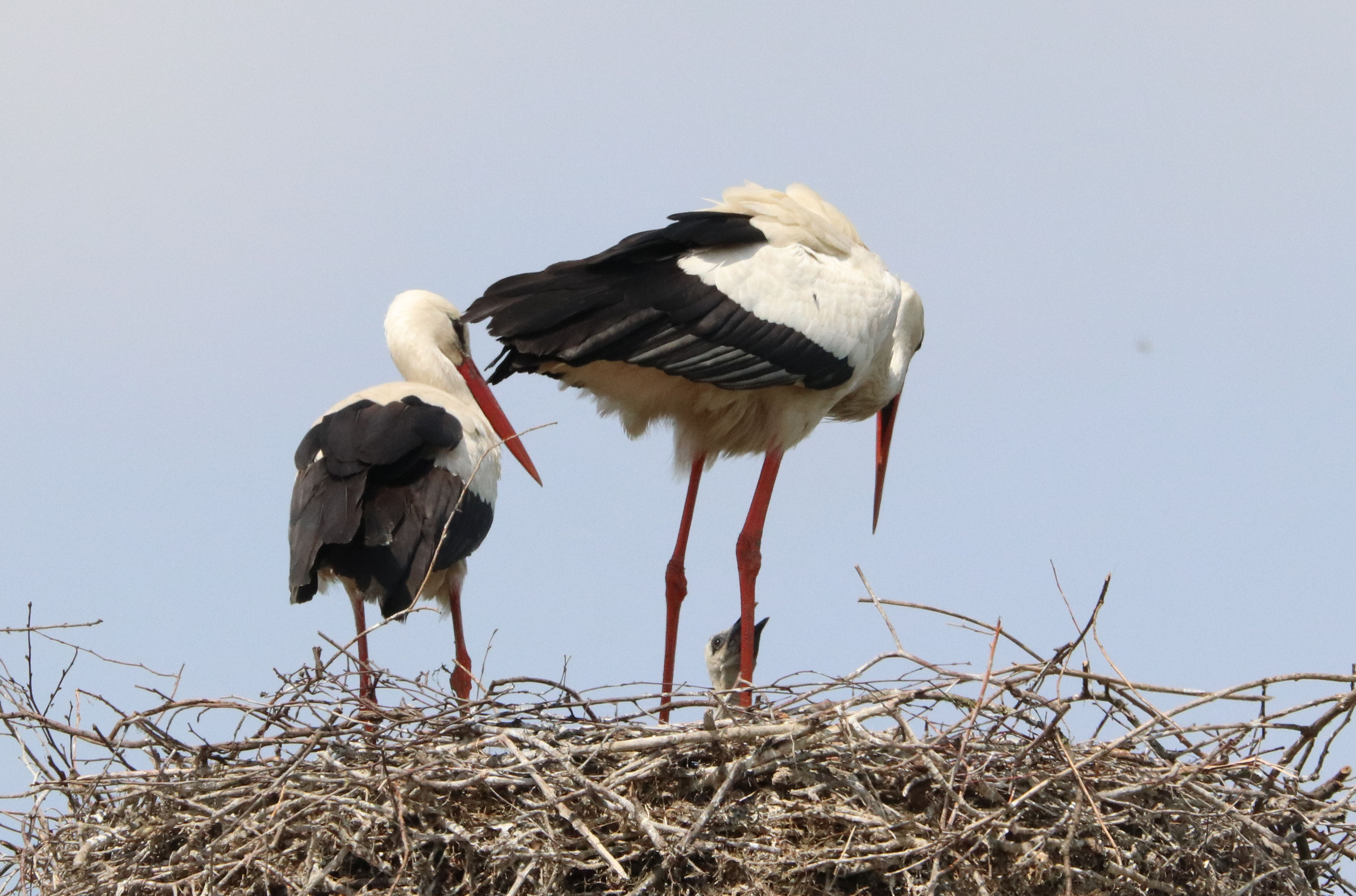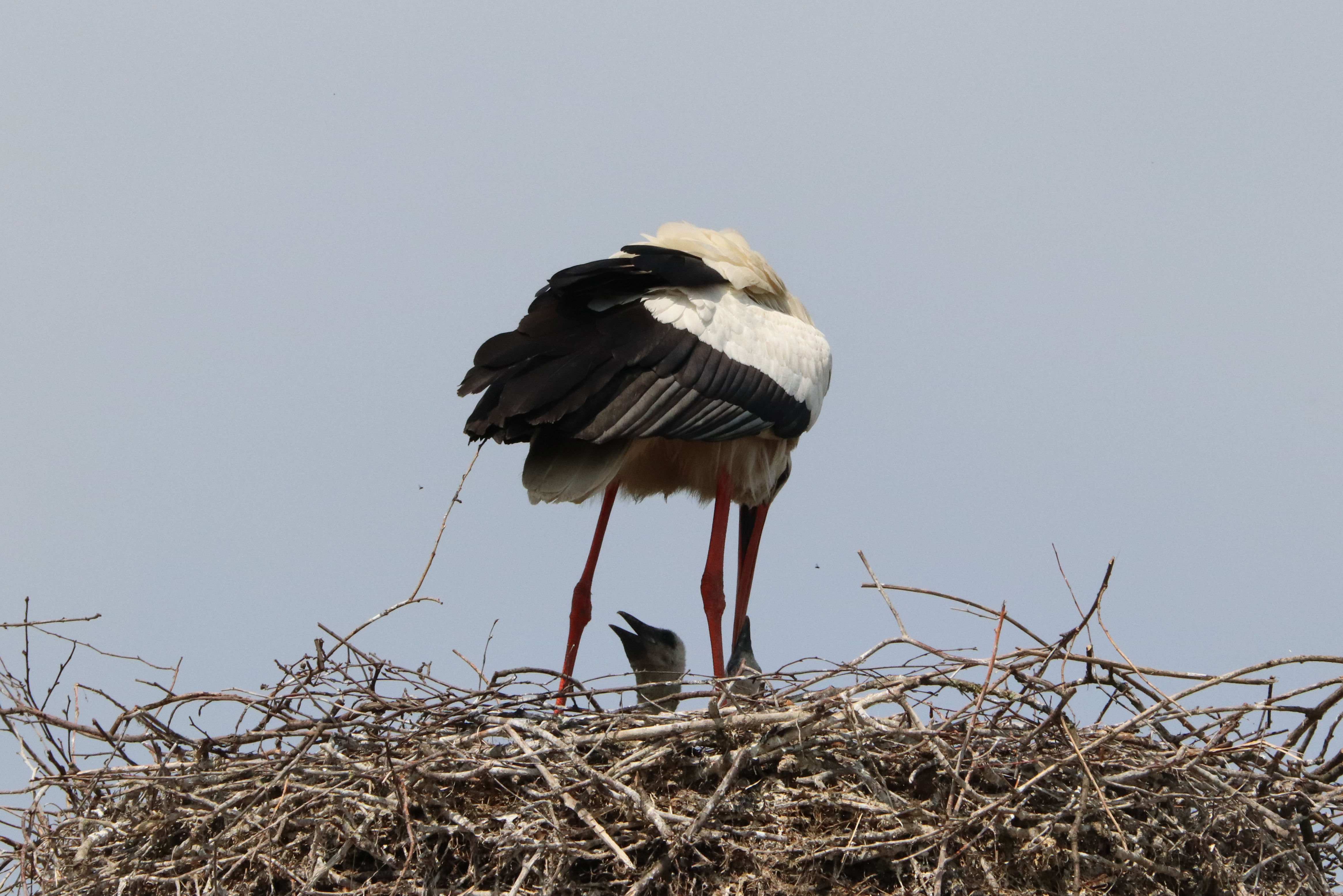 Das Störche bei Nahrungsmangel nur ein Küken großziehen, ist ganz normal. Auch das sie Jungvögel dann aus dem Nest werfen. Aber einen Jungvogel zu sehen, der in seiner Entwicklung irgendwie stehen geblieben ist, ist für mich etwas Neues. In der Natur gilt eben das Gesetz des Stärkeren. Jemand der schwach oder verletzt ist, kann meistens nicht überleben. So wird es wohl leider auch bei dem kleinen Jungvogel enden. Er wird das Nest so nicht verlassen können.