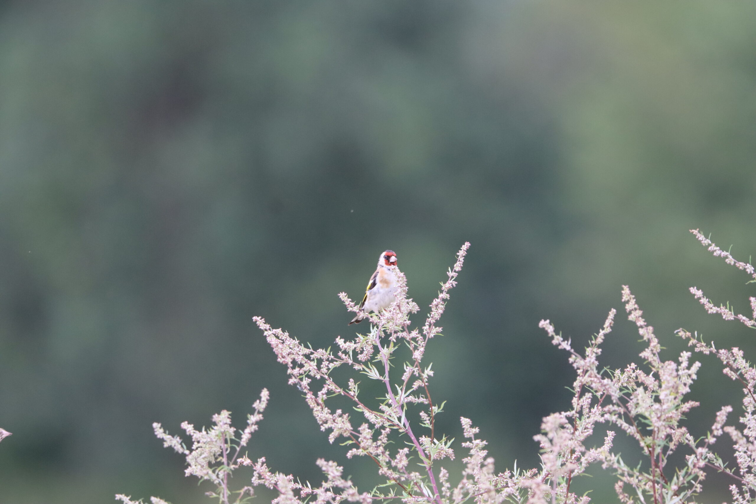 - Ein kleiner Schwarm Distelfinken war im Gelände unterwegs